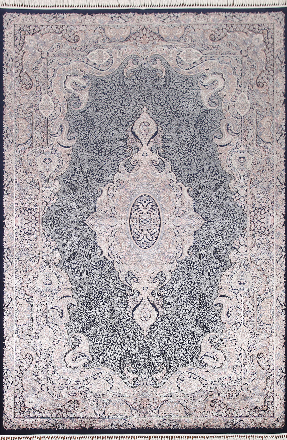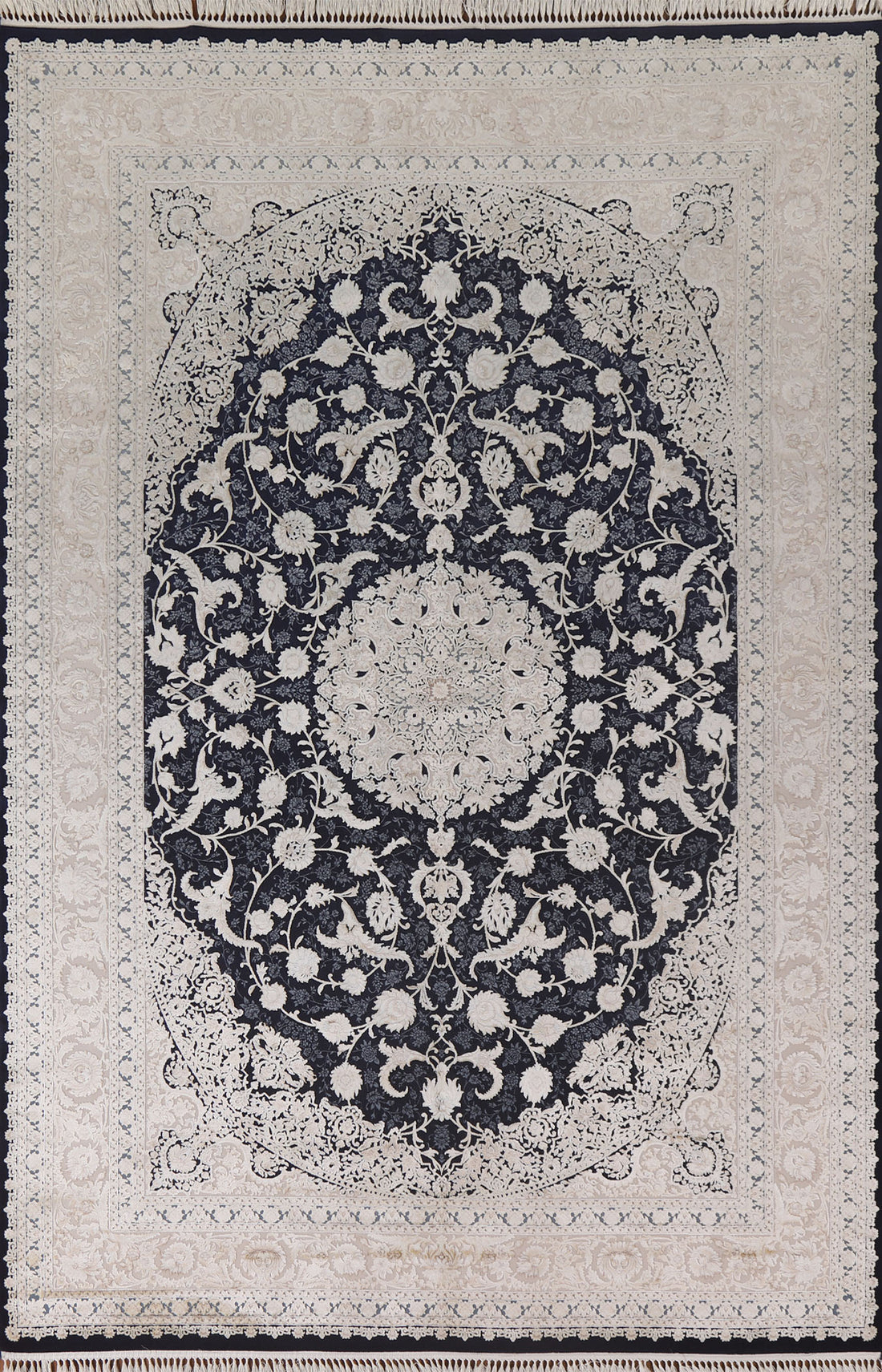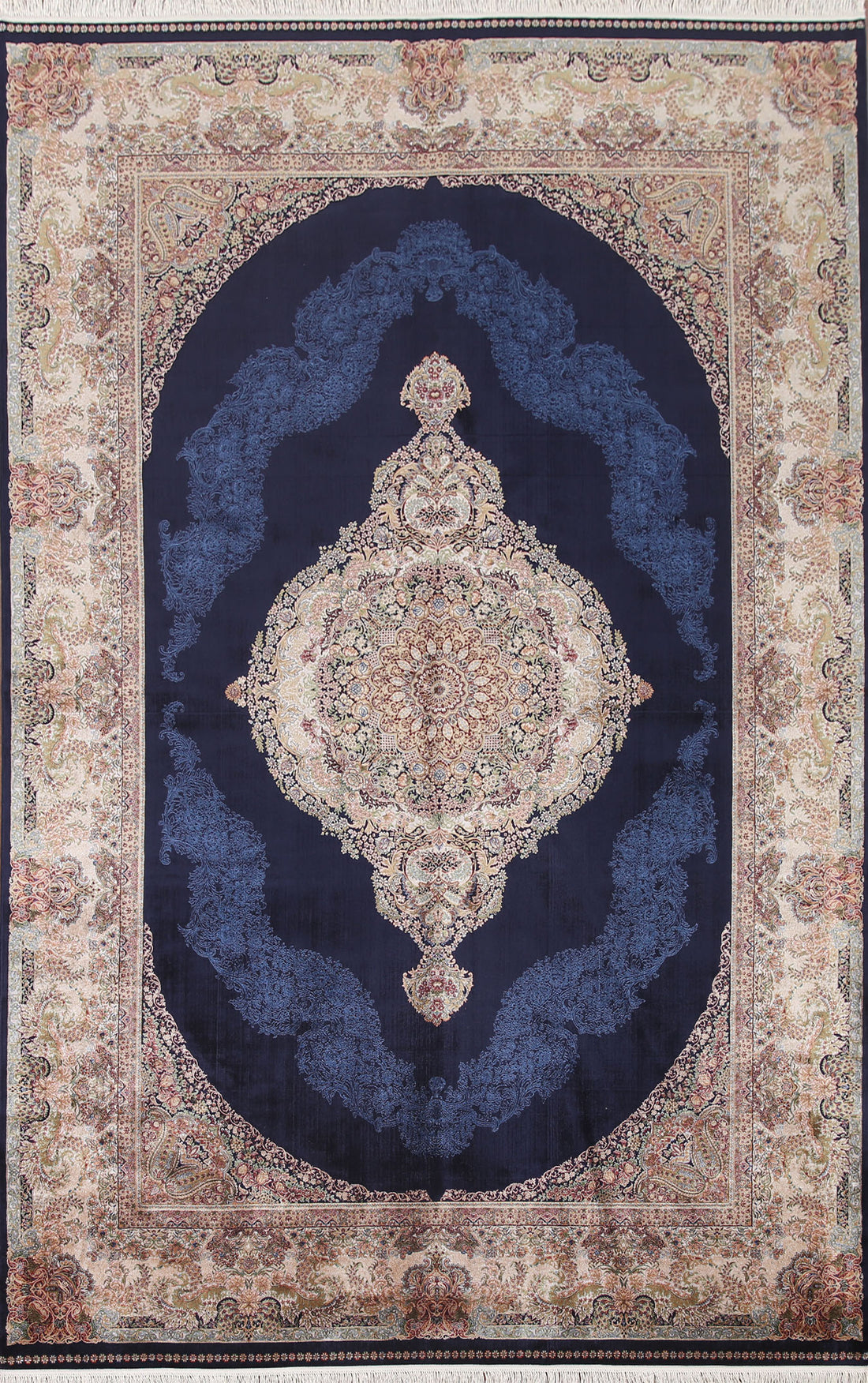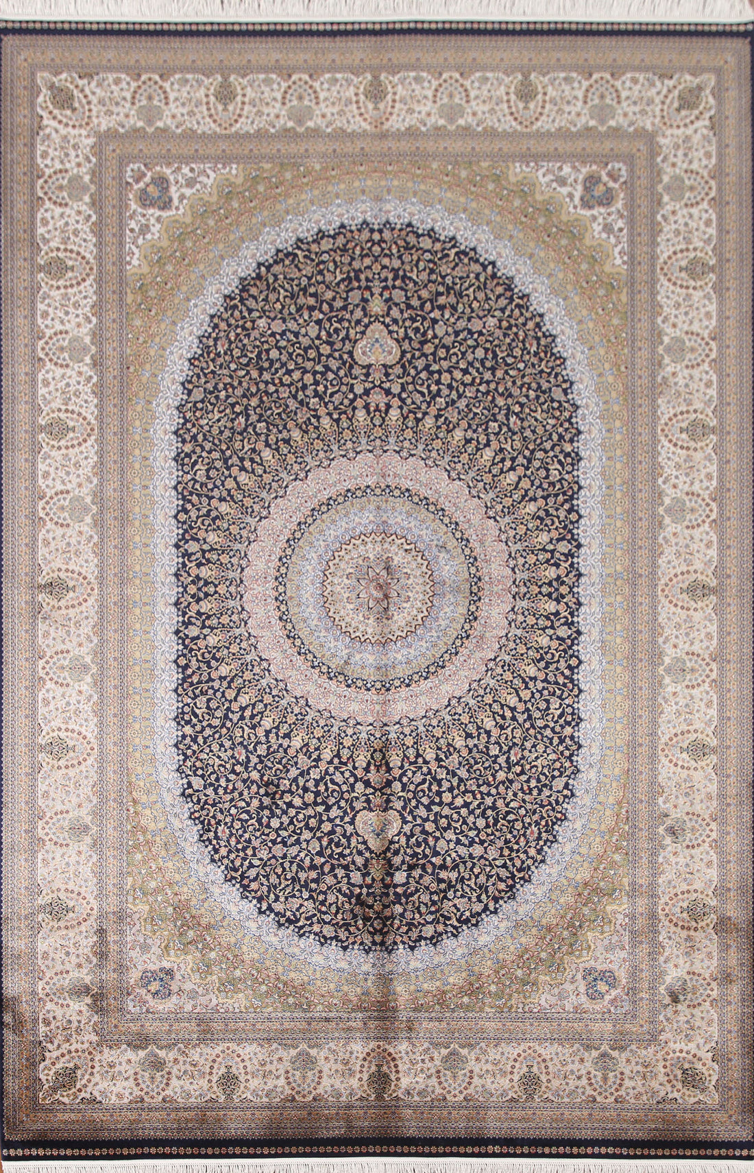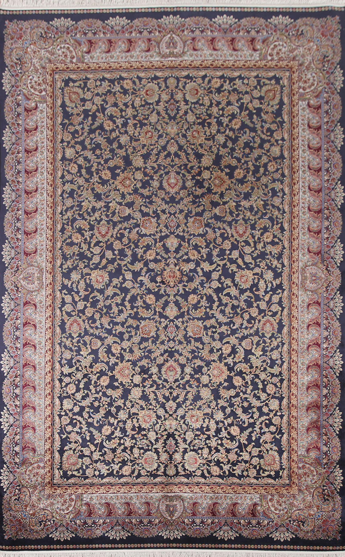 Navy Blue Floral Qum Traditional Area Rug 7x10