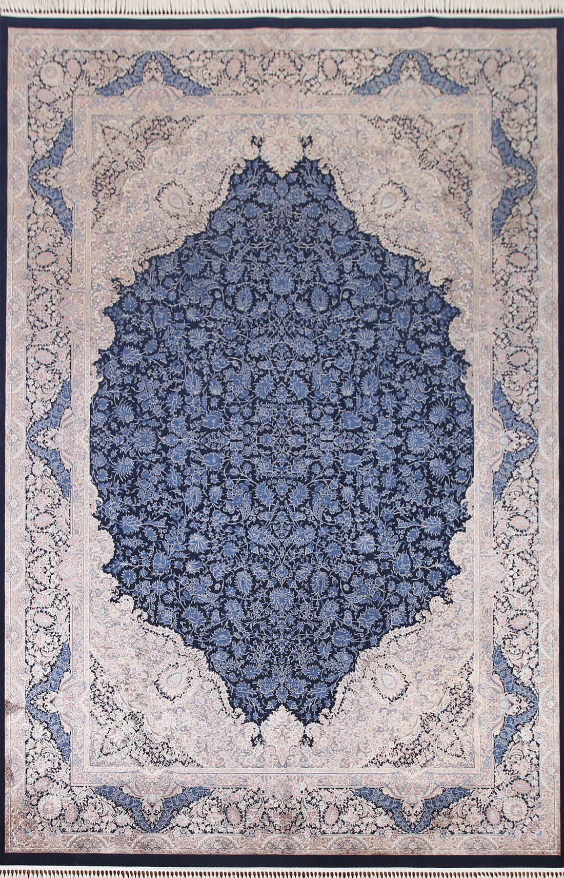 All-Over Floral Blue Tabriz Turkish Area Rug 7x10
