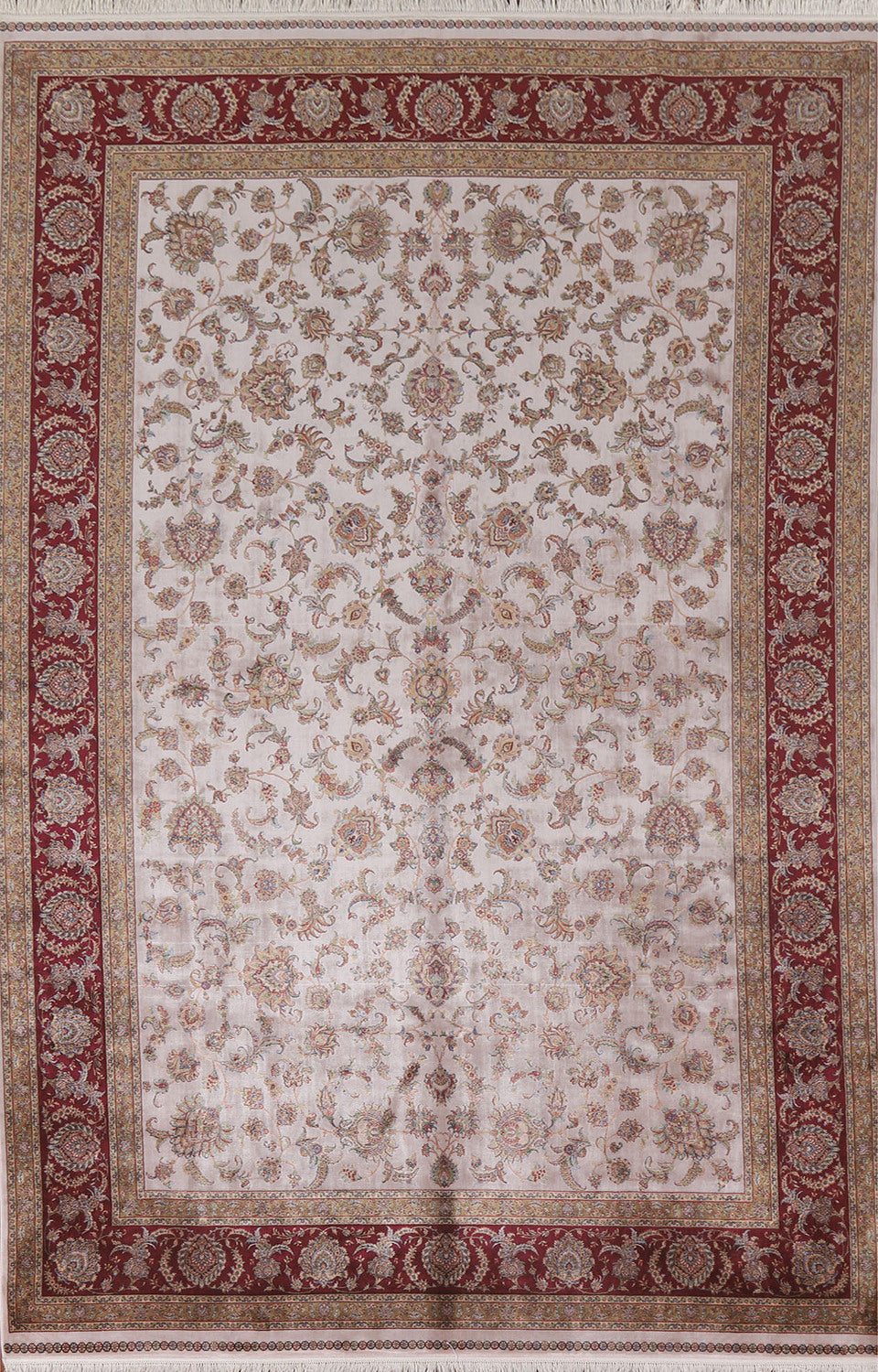Ivory Floral Silk Tabriz Traditional Area Rug 7x10