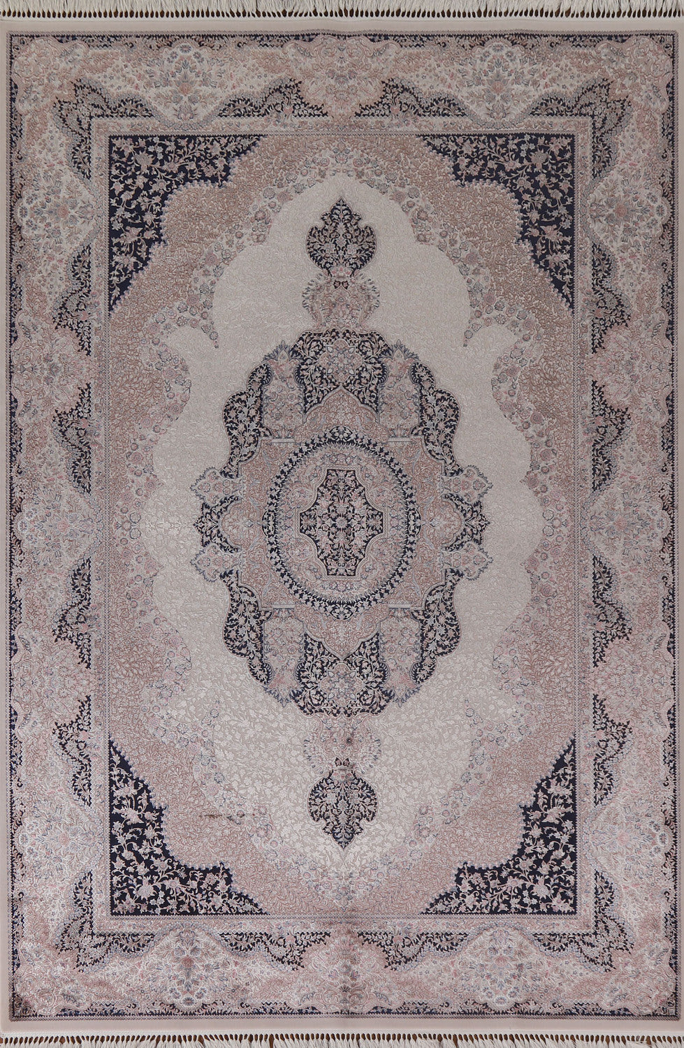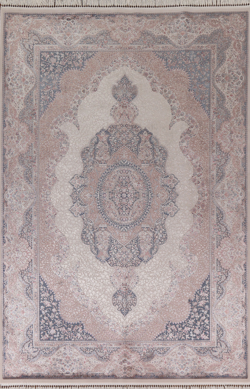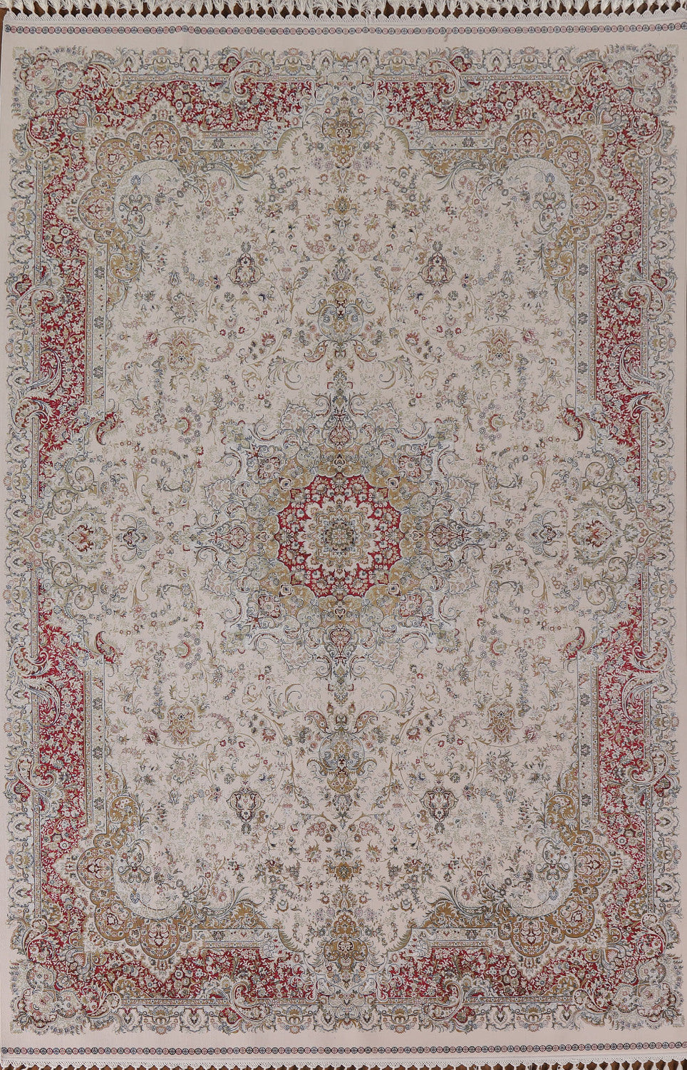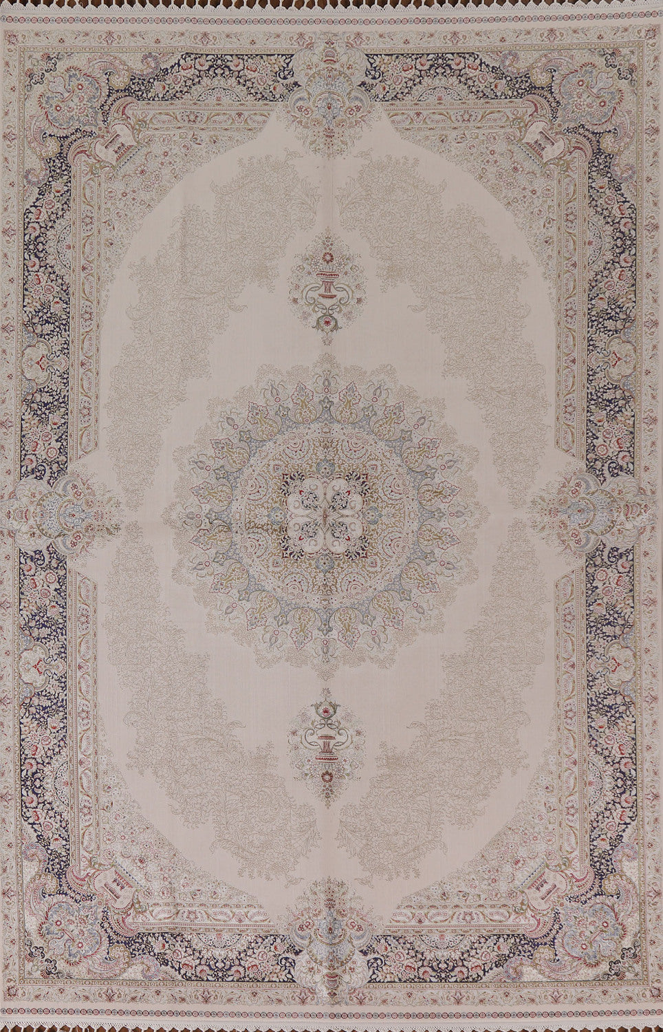 Traditional Ivory Qum Turkish Area Rug 6x10