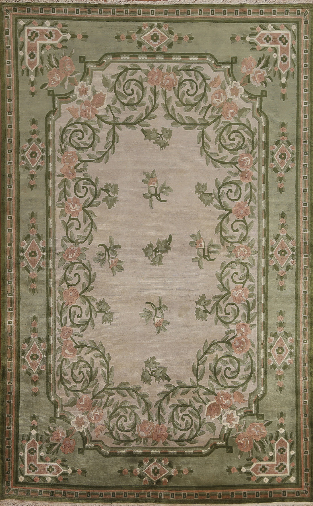 Vegetable Dye Floral Aubusson Oriental Area Rug 5x8