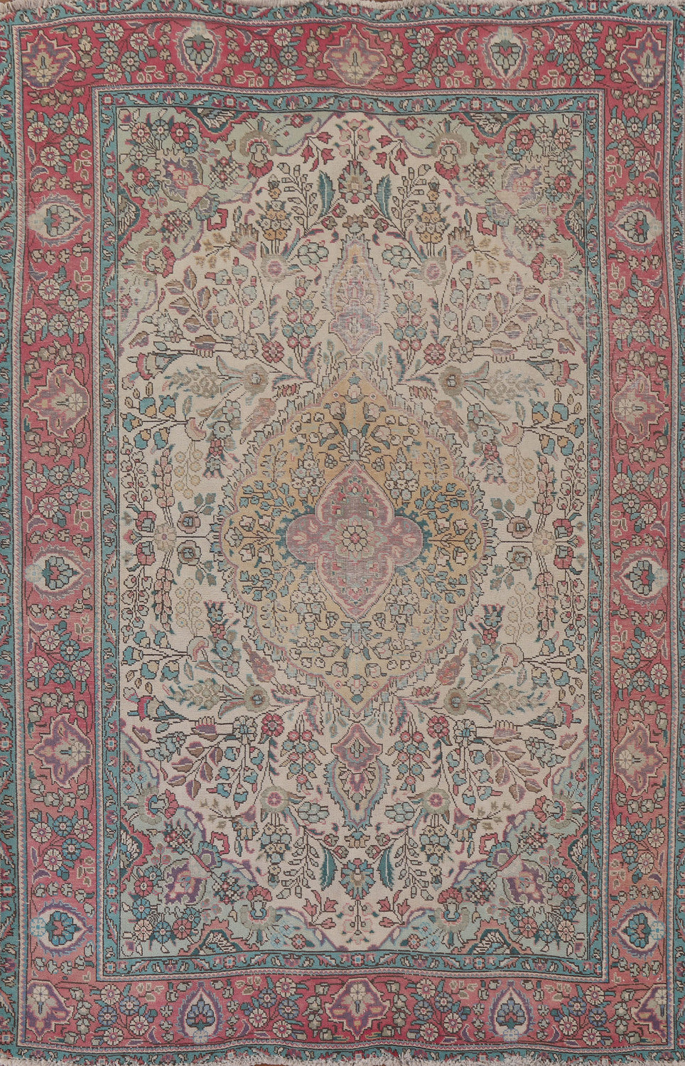 Vintage Floral Tabriz Persian Area Rug 6x9