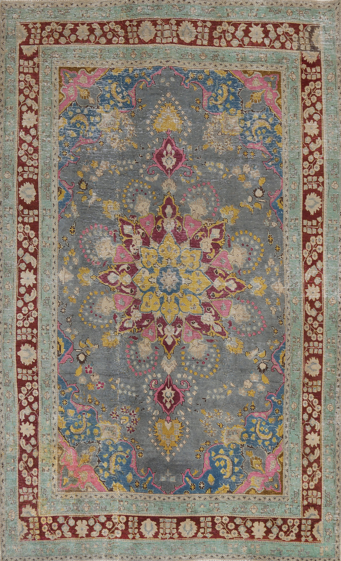 Distressed Floral Tabriz Persian Wool Rug 6x9