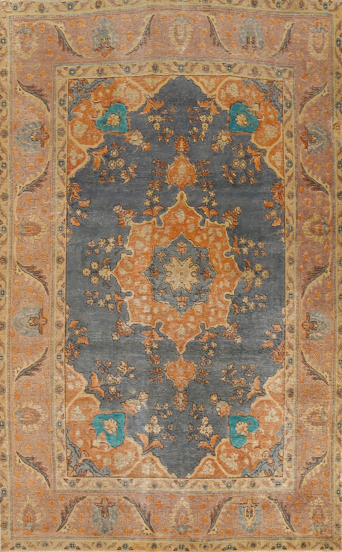 Muted Distressed Tabriz Persian Area Rug 7x9
