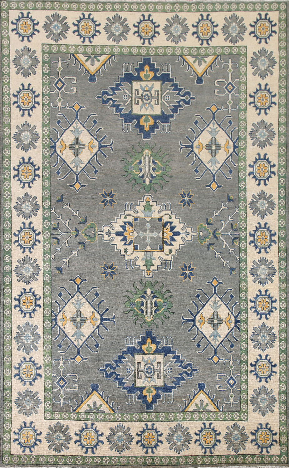 Gray Geometric Kazak Oriental Area Rug 7x10