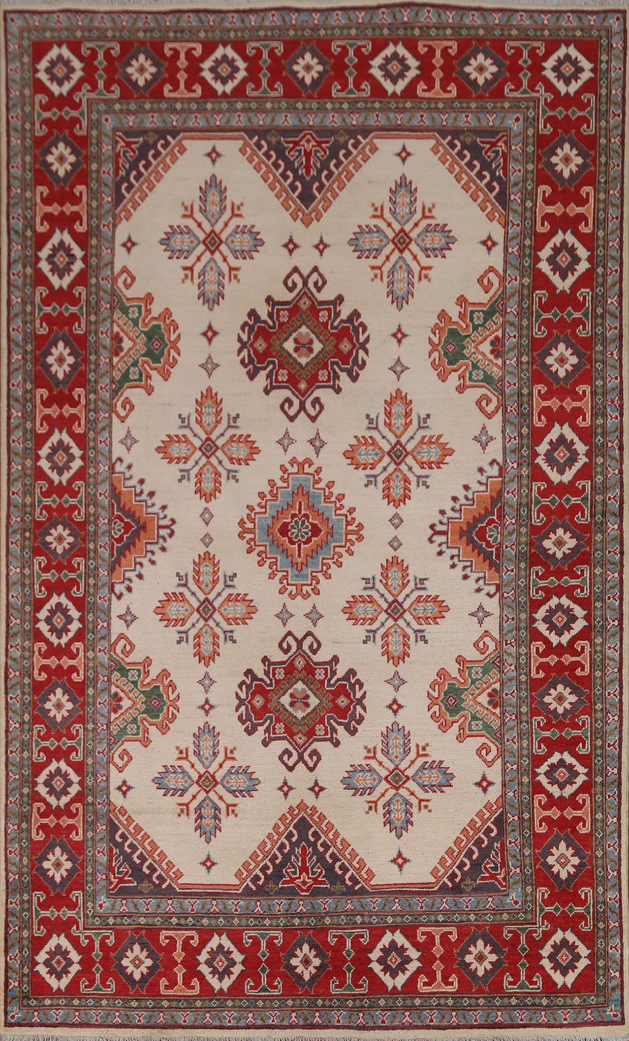 Ivory Wool Kazak Oriental Area Rug 7x10