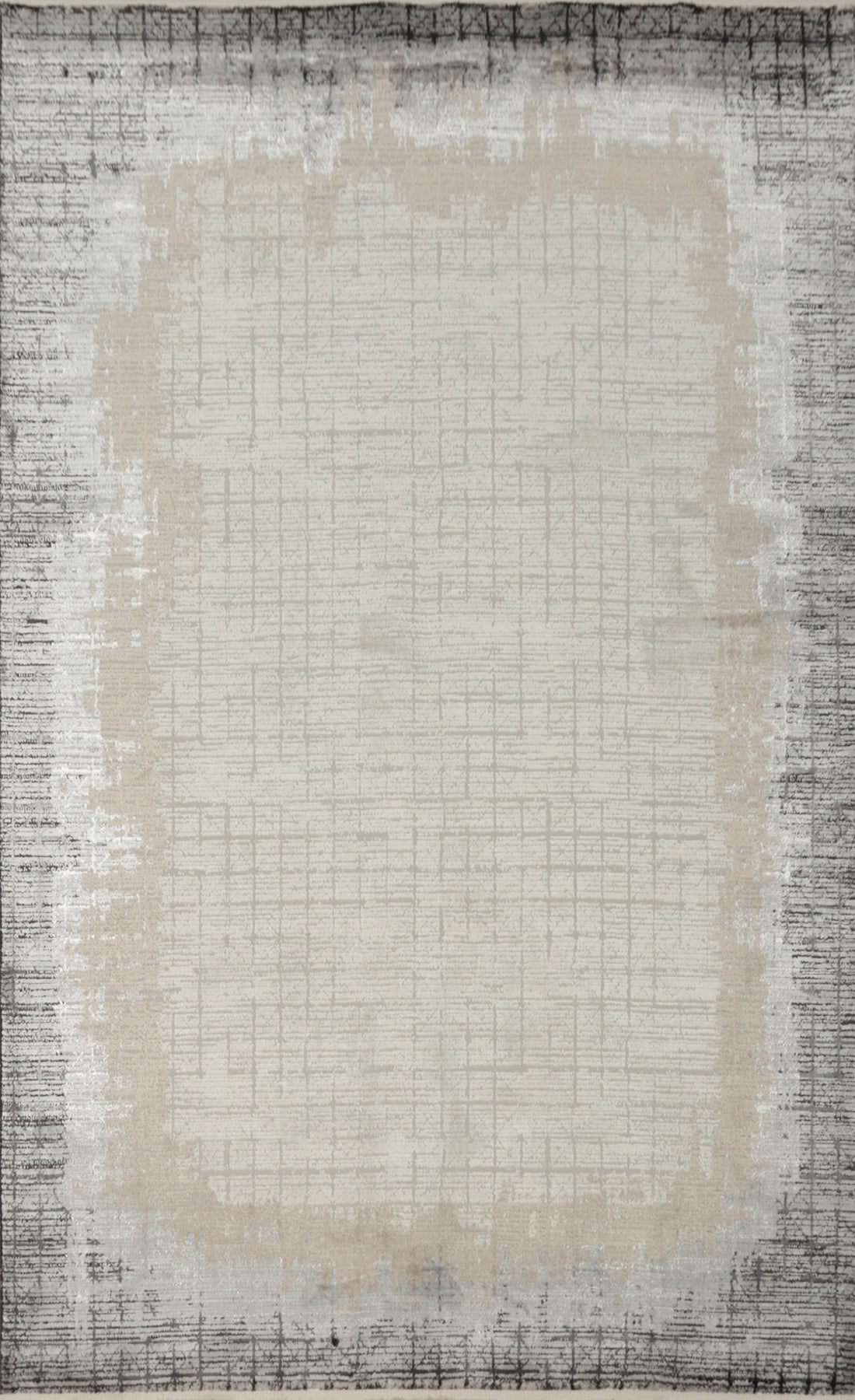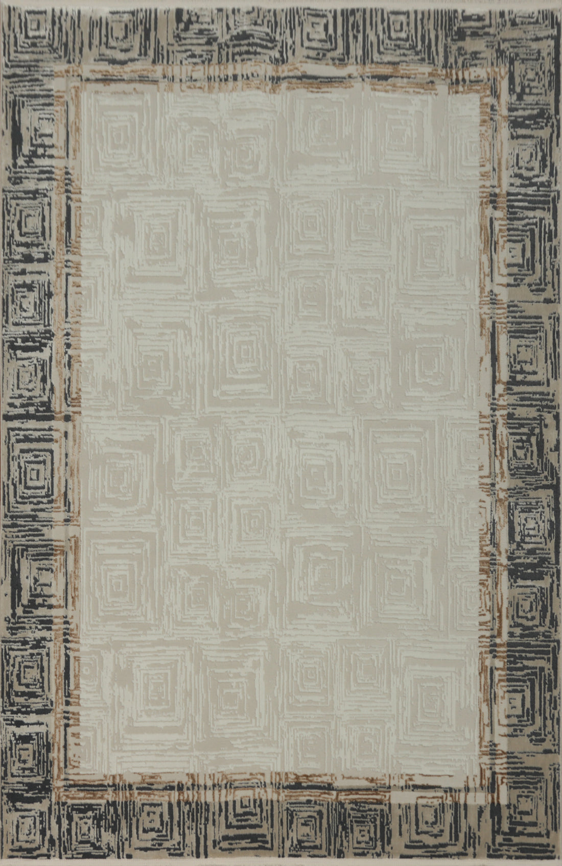 Modern Stylish Beige and Gray Bordered Rug 5x7