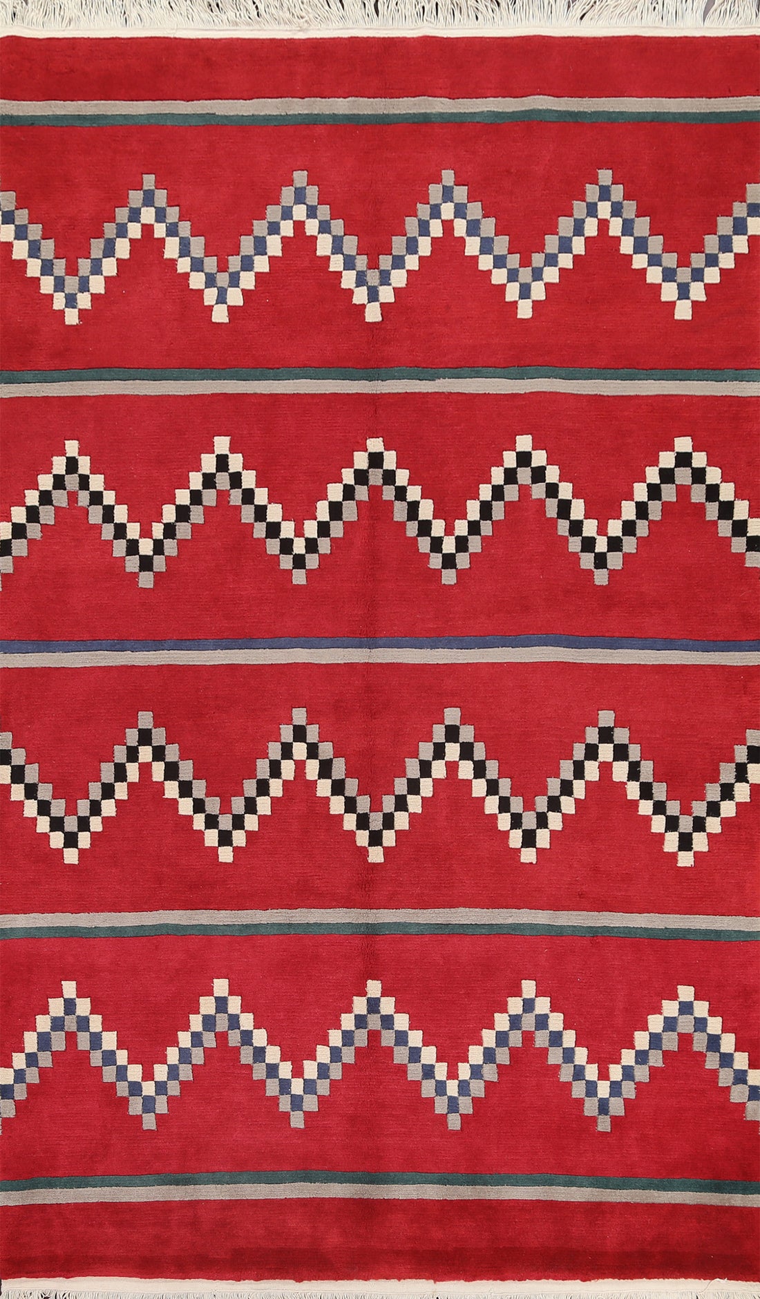 Vegetable Dye Geometric Nepalese Wool Area Rug 4x6