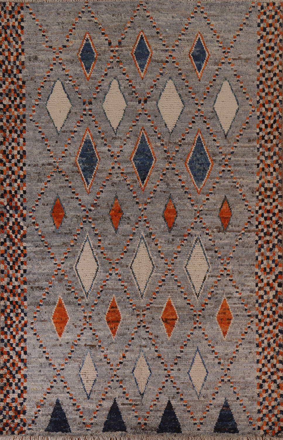 Hand-Knotted Moroccan Wool Area Rug 6x8