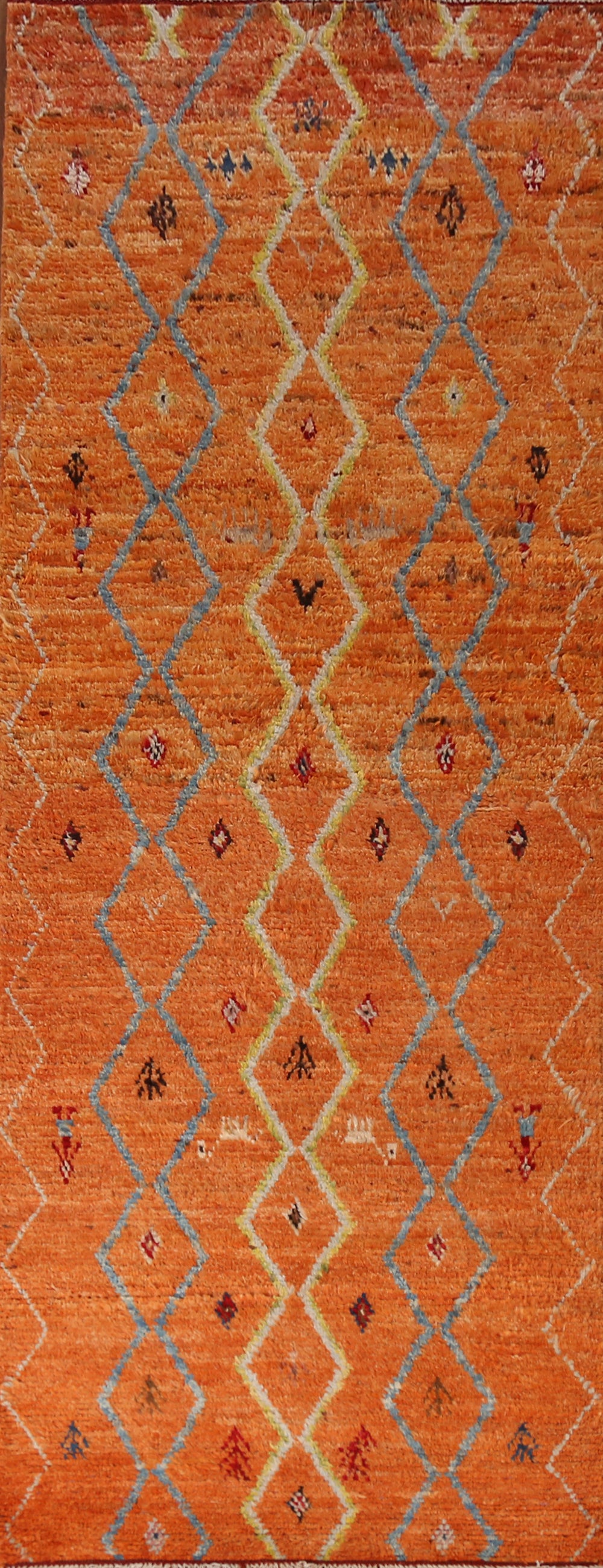 Orange Wool Moroccan Oriental Runner Rug 3x10
