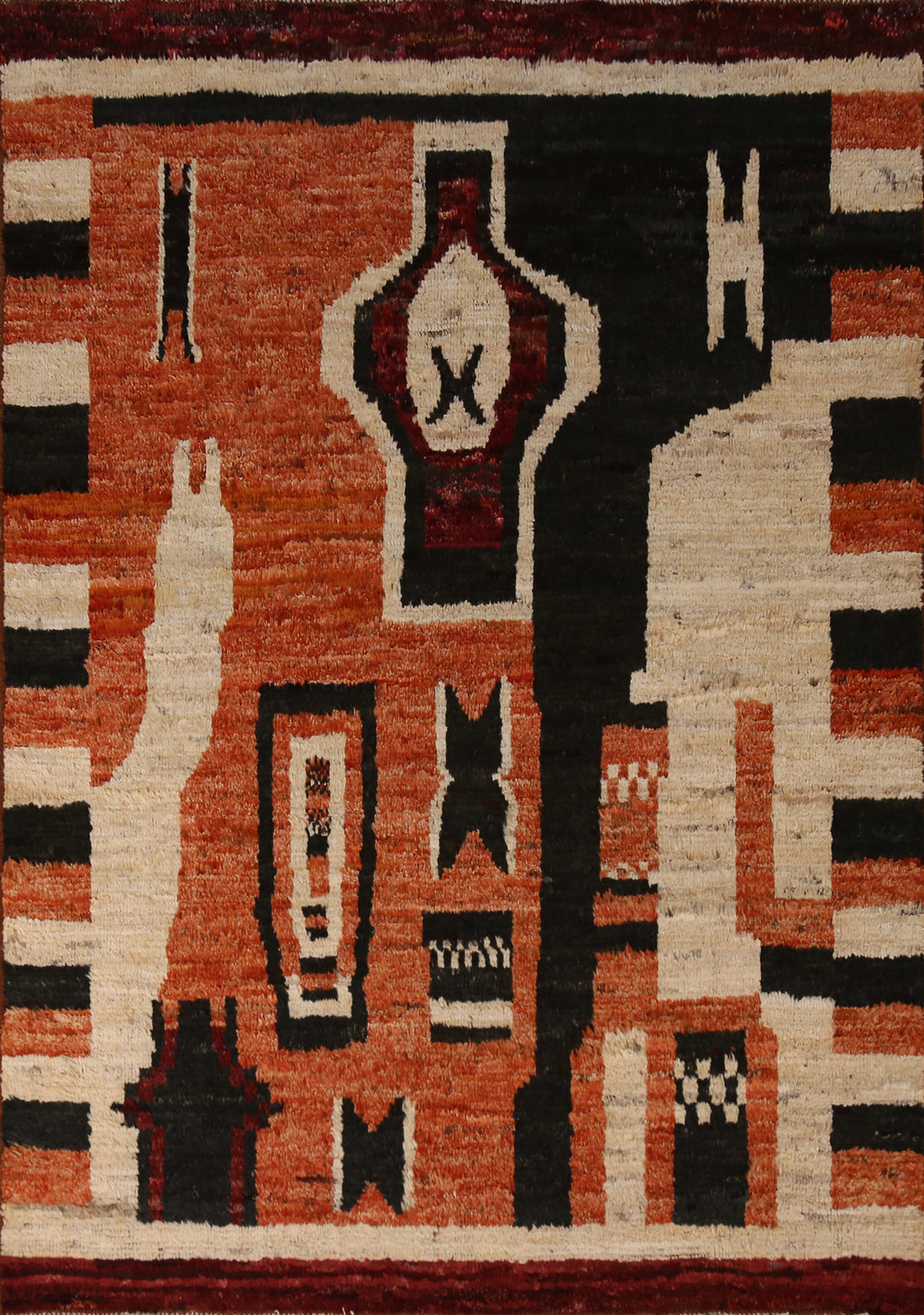 Checkered Wool Orange Moroccan Oriental Area Rug 7x10