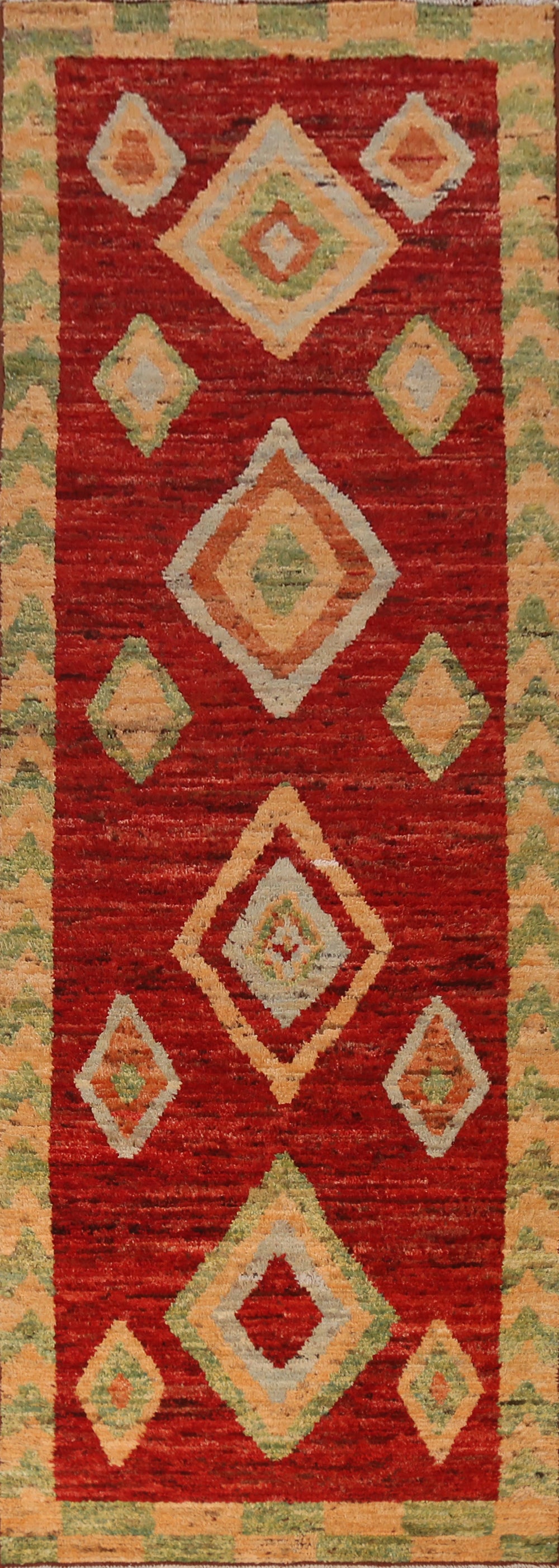 Modern Trellis Wool Moroccan Oriental Runner Rug 2x13