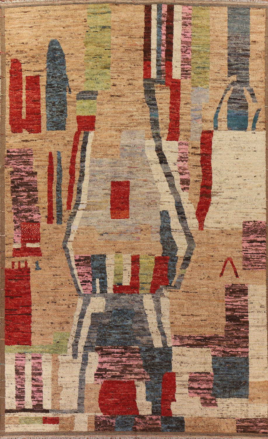 A Beautiful Genuine Pakistan Abstract rug is Hand Knotted by skillful weavers in Pakistan with...