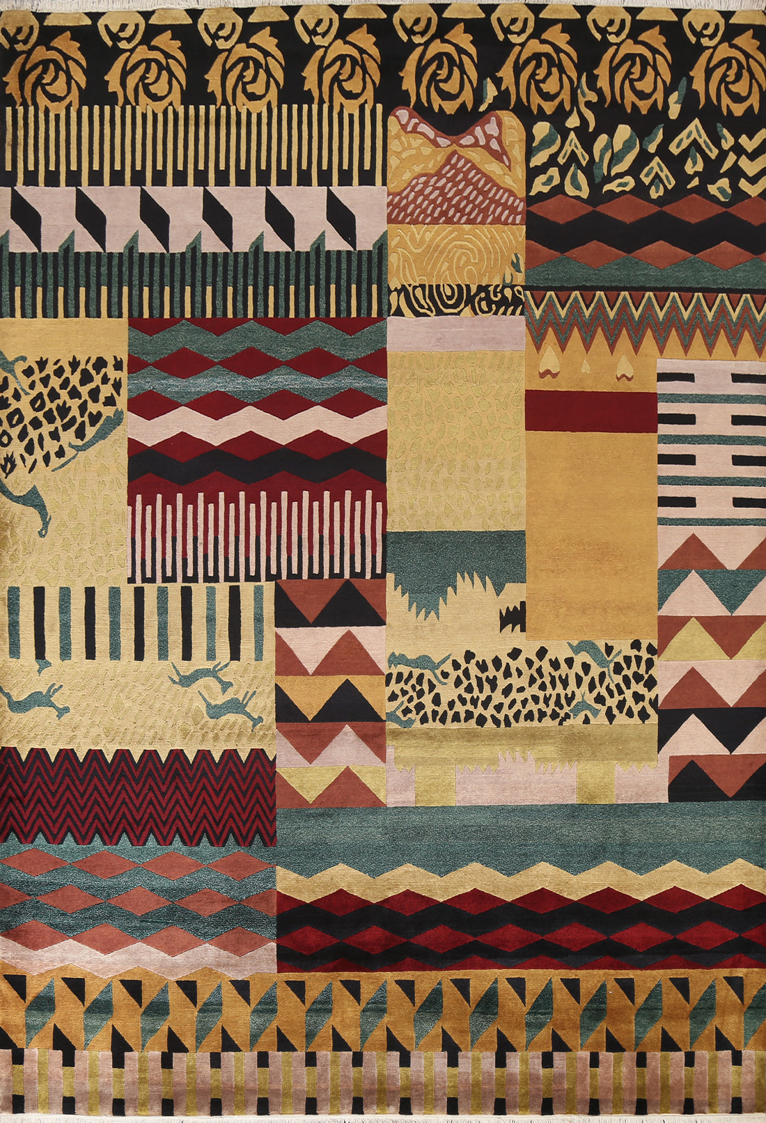 A Beautiful Genuine India Abstract rug is Hand Knotted by skillful weavers in India with...