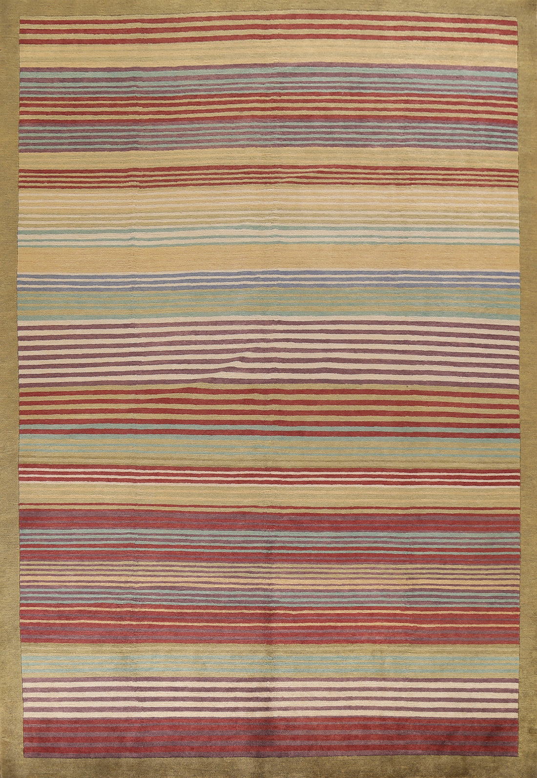 Modern Stripe Nepalese Wool Area Rug 8x11