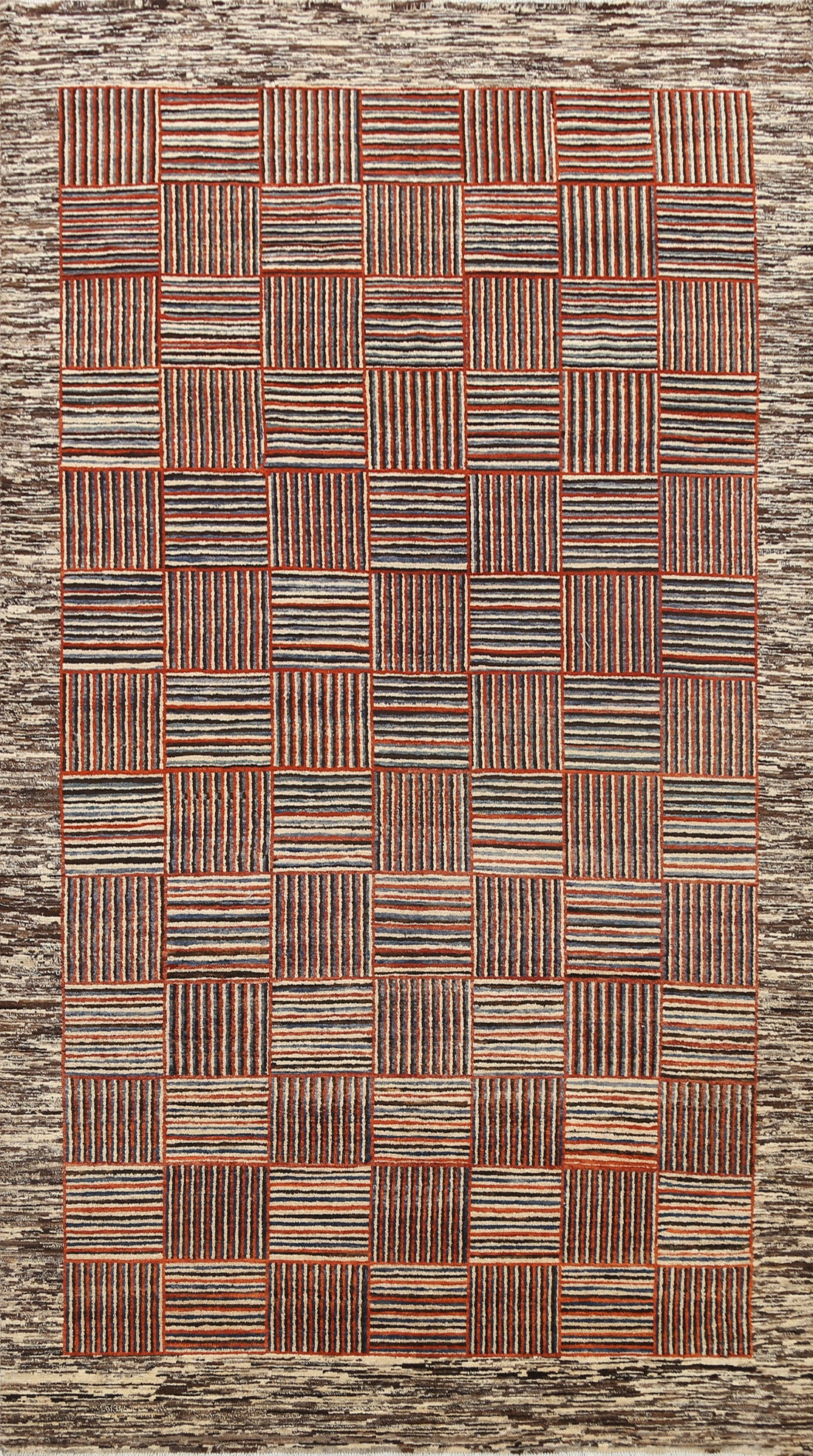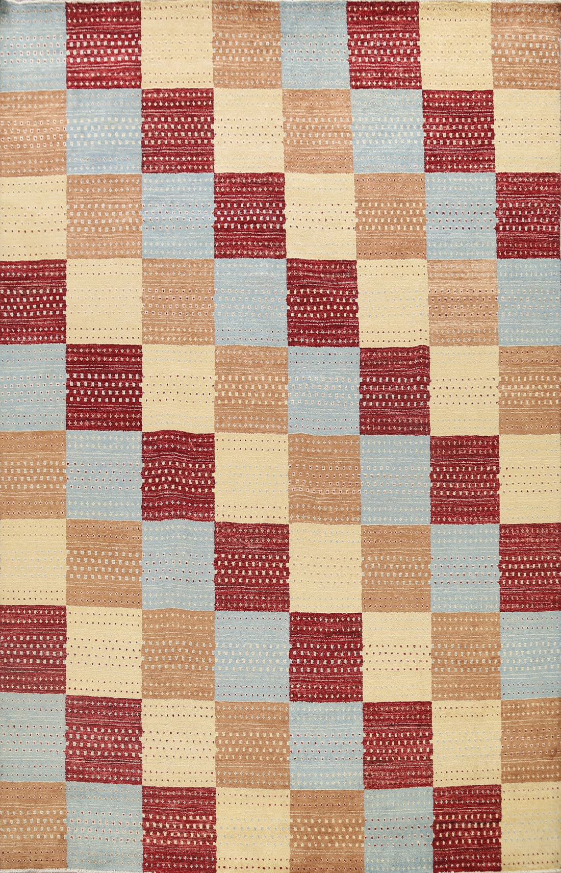Modern Checkered Gabbeh Kashkoli Oriental Area Rug 6x10