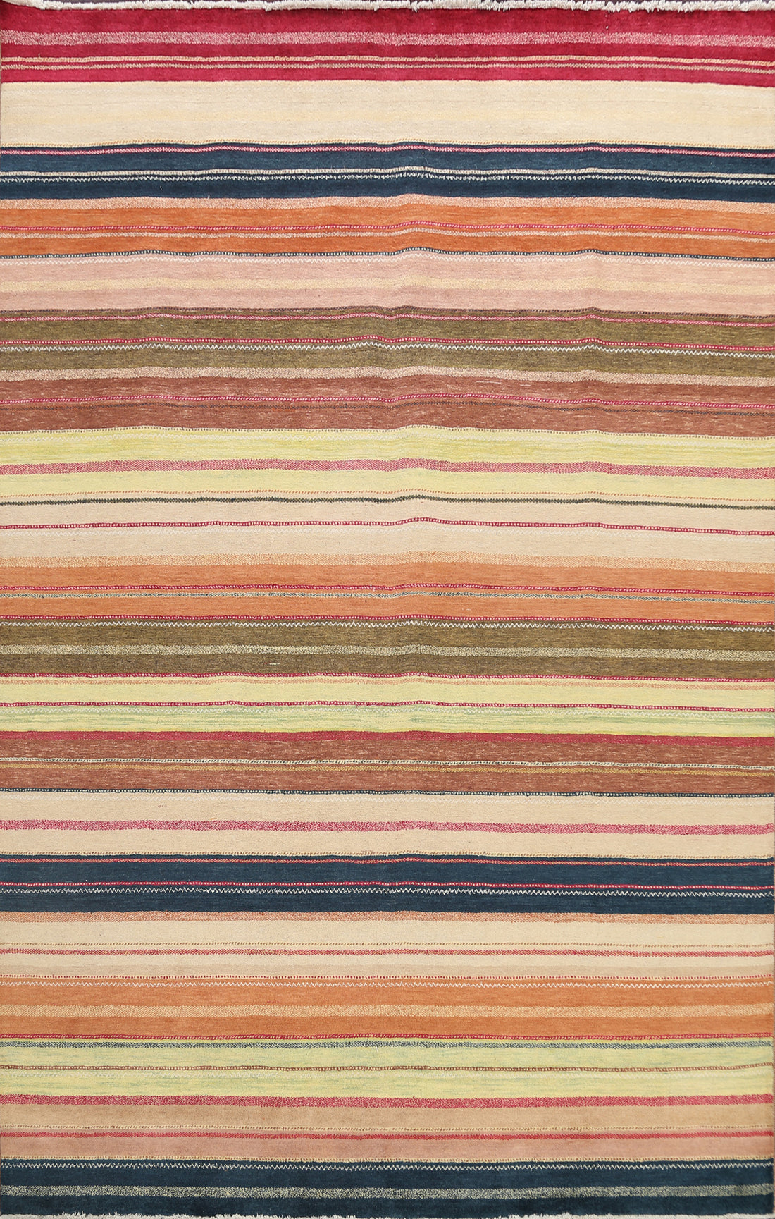 Modern Stripe Gabbeh Kashkoli Oriental Area Rug 7x10