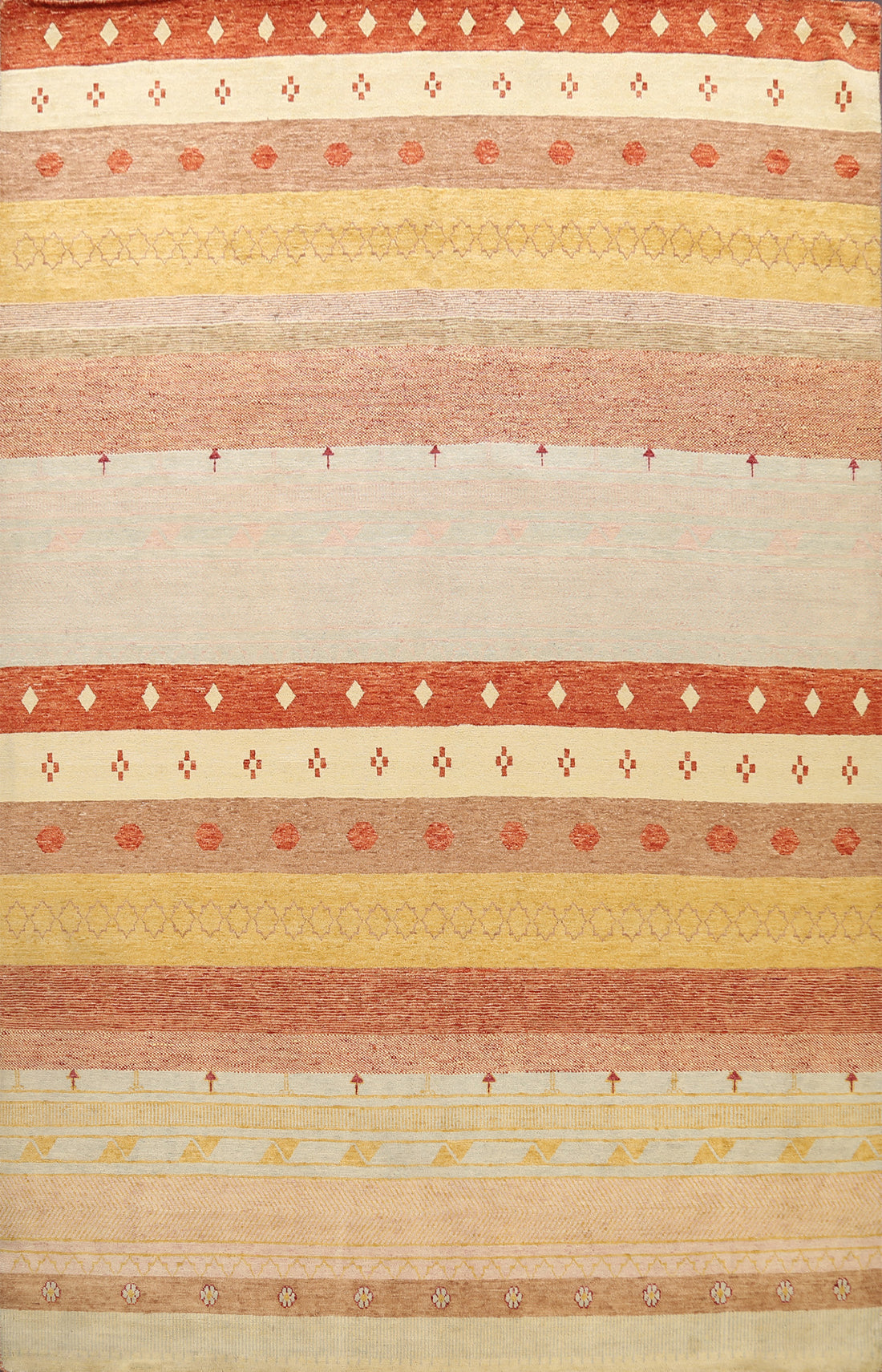 Modern Striped Gabbeh Kashkoli Oriental Area Rug 7x10