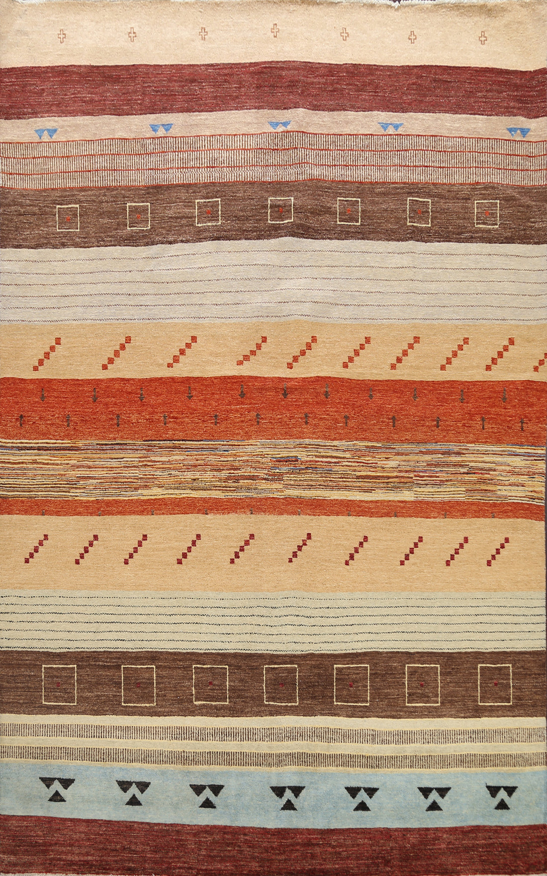 Modern Gabbeh Kashkoli Oriental Area Rug 6x9
