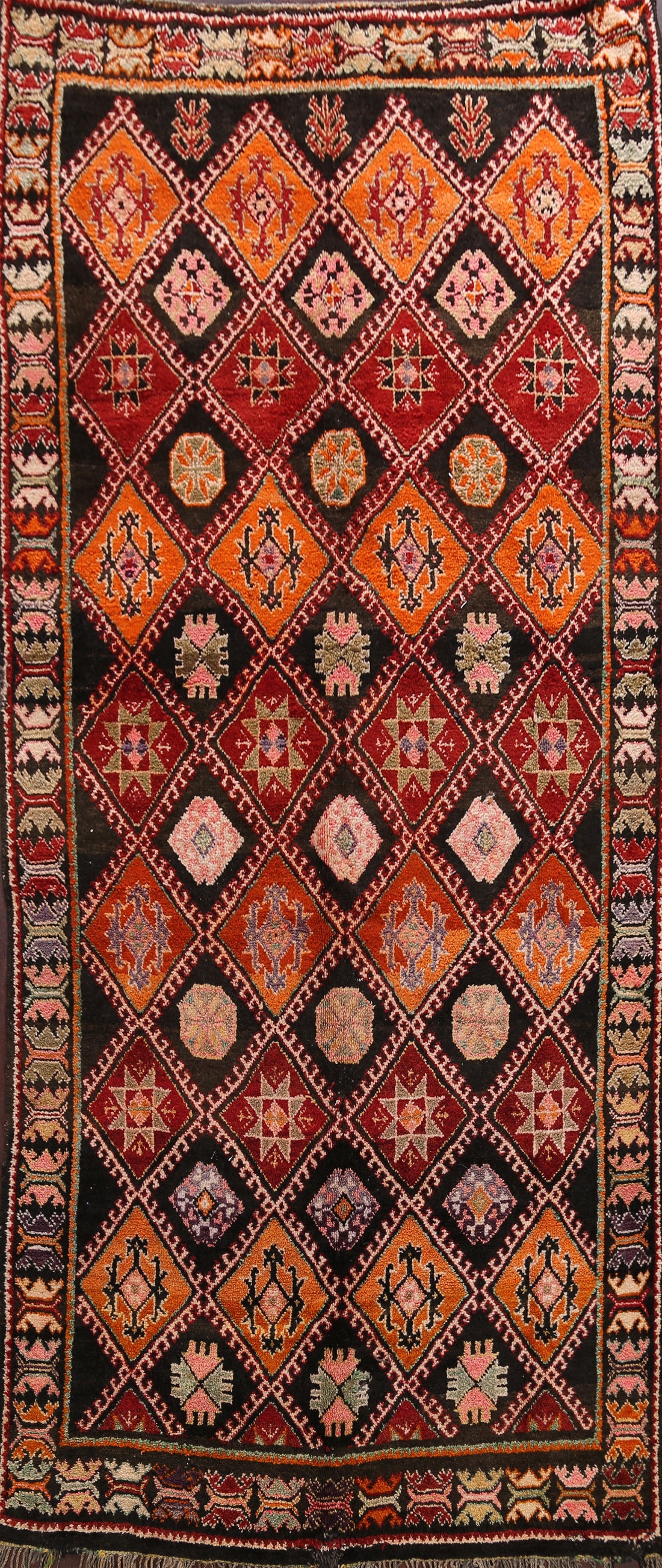 All-Over Checkered Ardebil Persian Runner Rug 4x8