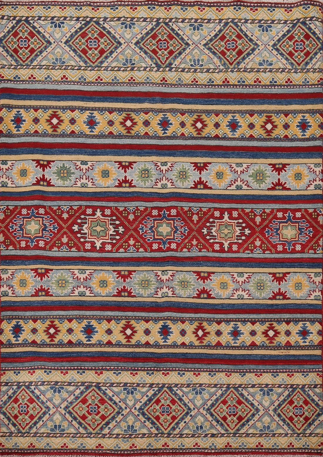 A Beautiful Genuine Pakistan Kazak rug is Hand Knotted by skillful weavers in Pakistan with...