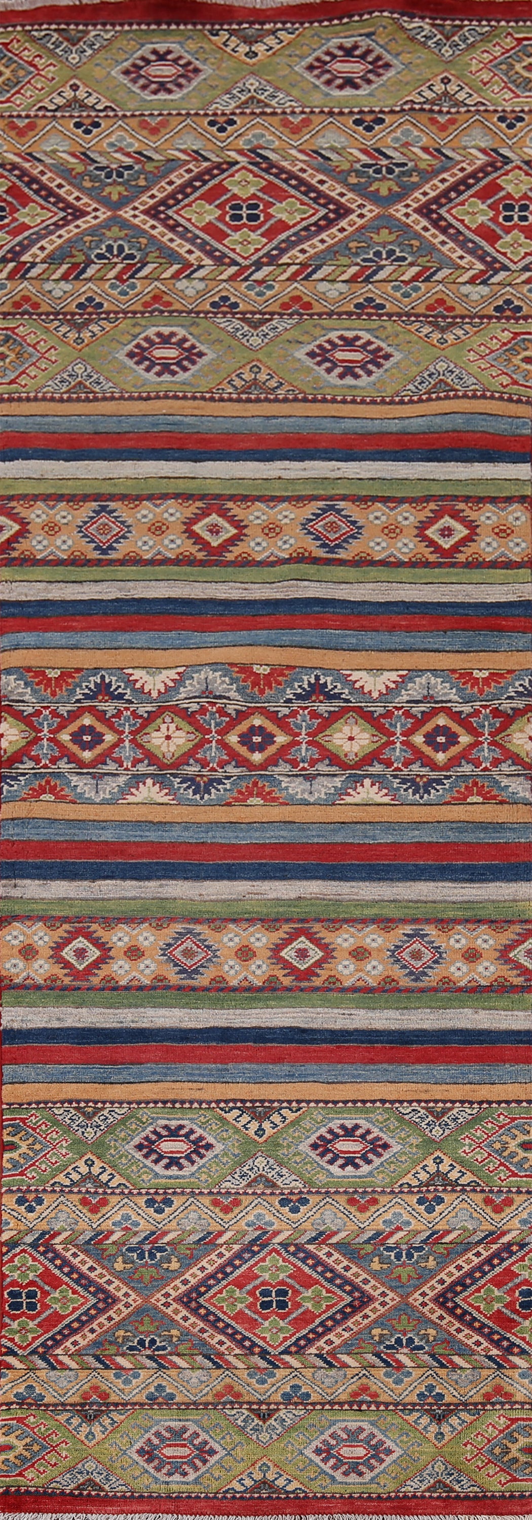 Striped Wool Kazak Oriental Runner Rug 3x9