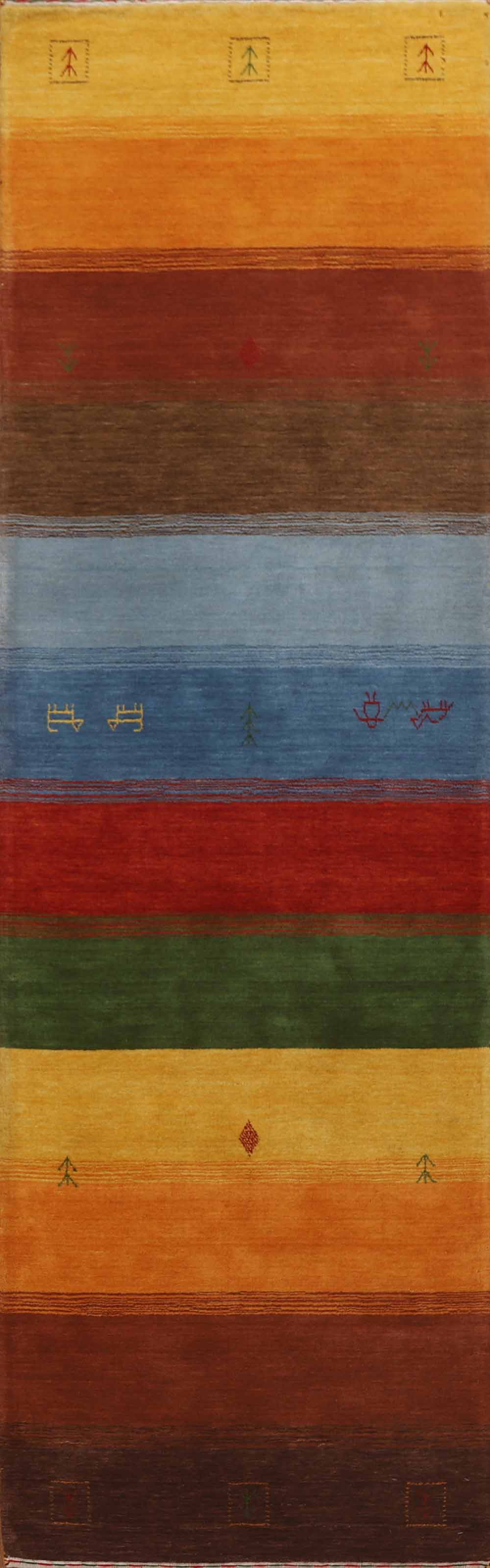 Striped Wool Gabbeh Oriental Runner Rug 3x10
