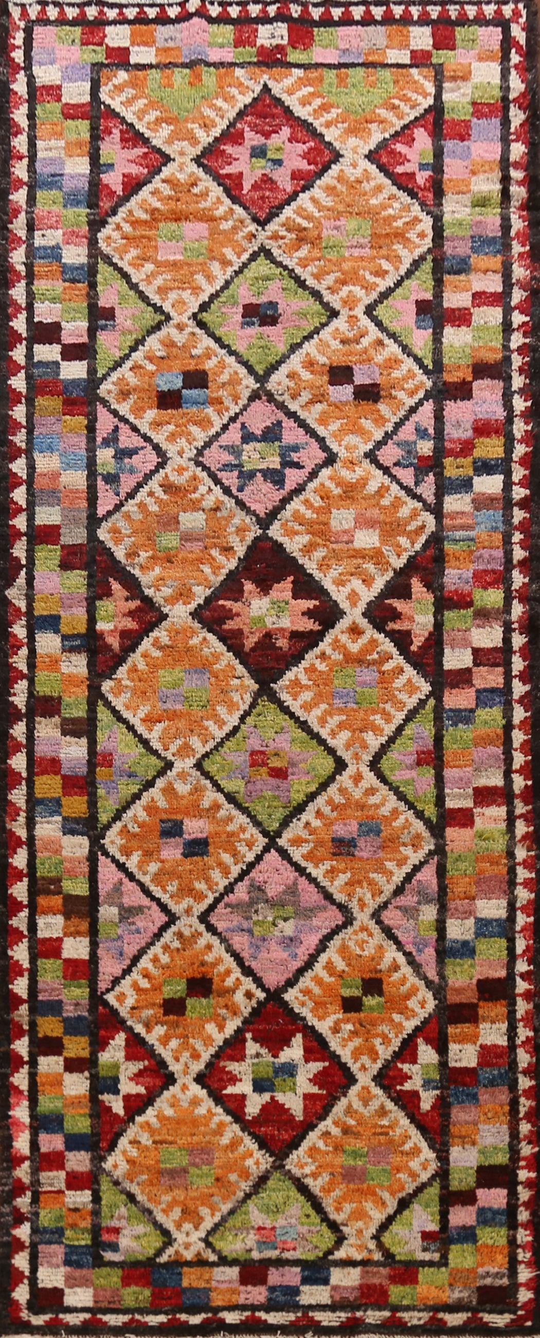 Checkered Wool Moroccan Oriental Runner Rug 3x10