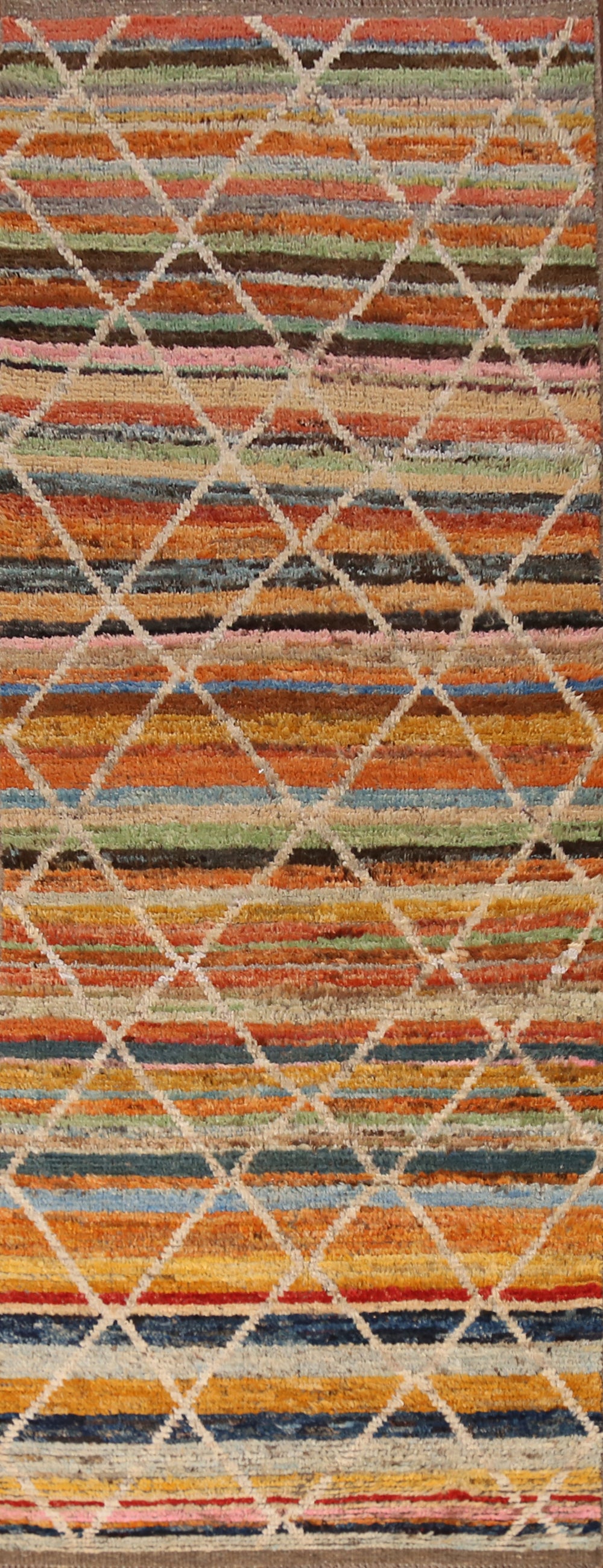 Chevron Style Wool Moroccan Oriental Runner Rug 2x10