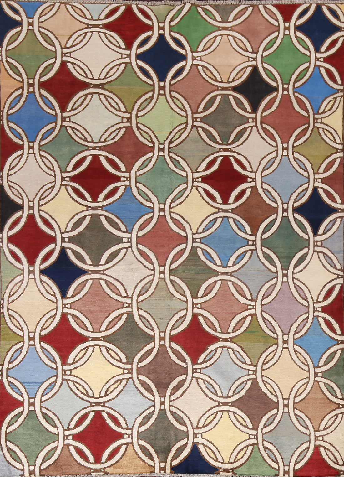 A Beautiful Genuine Pakistan Abstract rug is Hand Knotted by skillful weavers in Pakistan with...
