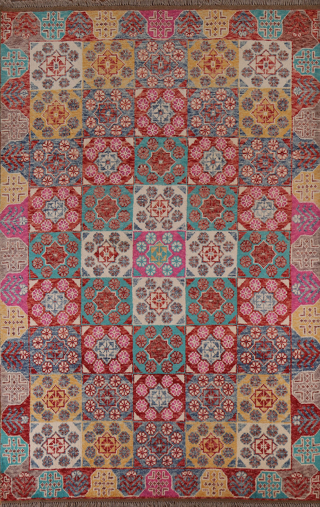 Vegetable Dye Abstract Handmade Area Rug 4x6