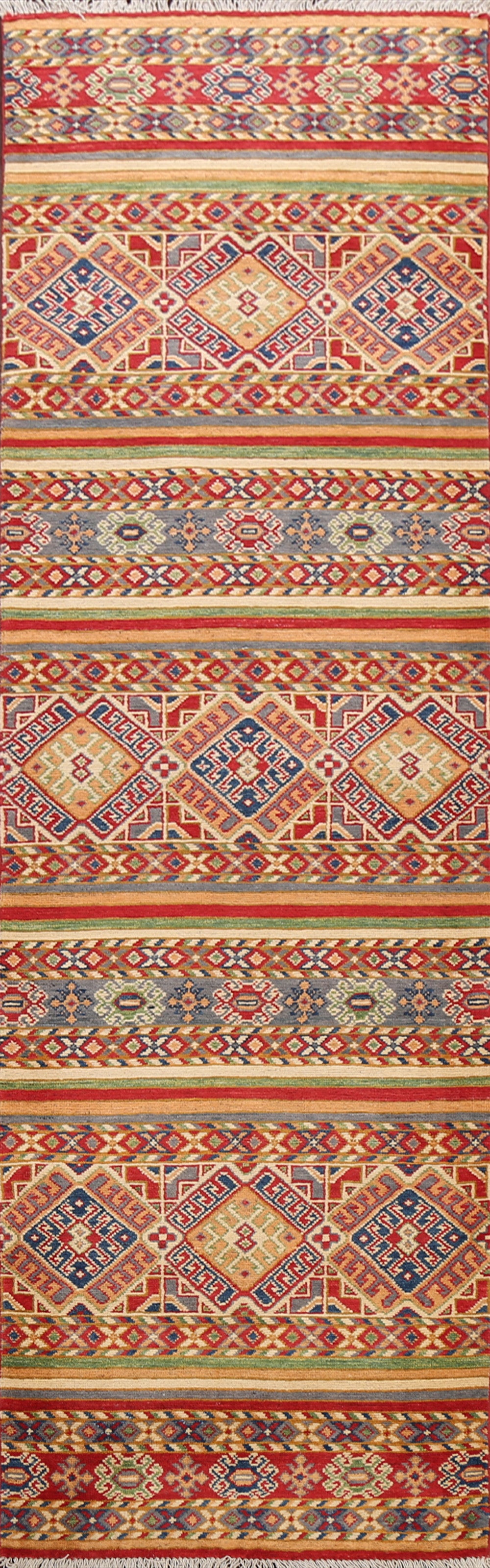 Geometric Kazak Oriental Runner Rug 3x10
