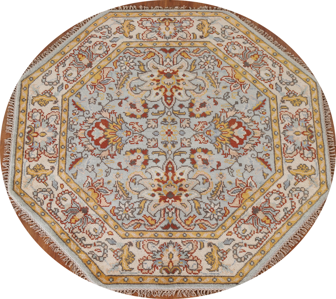 Light Blue Heriz Serapi Octagon Indian Rug 6x6