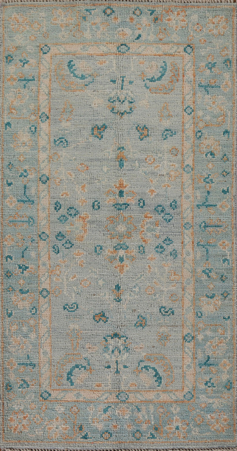 Blue Oushak Vegetable Dye Oriental Foyer Rug 2x4
