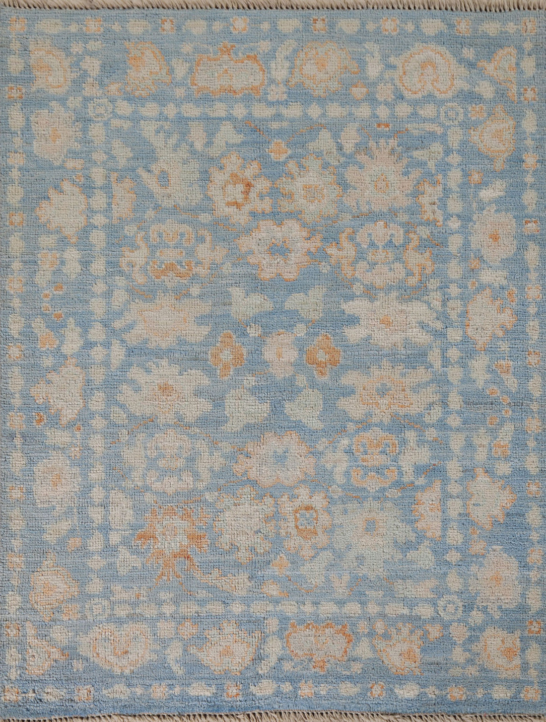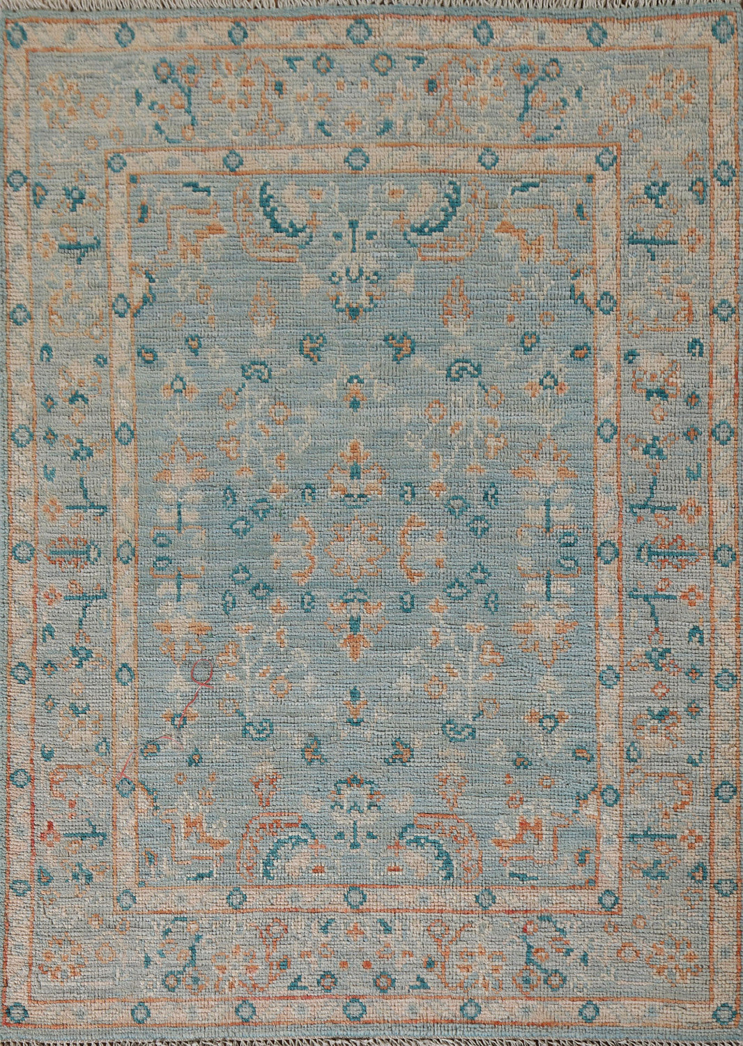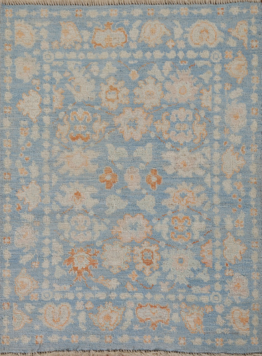Floral Blue Oushak Vegetable Dye Accent Rug 3x4