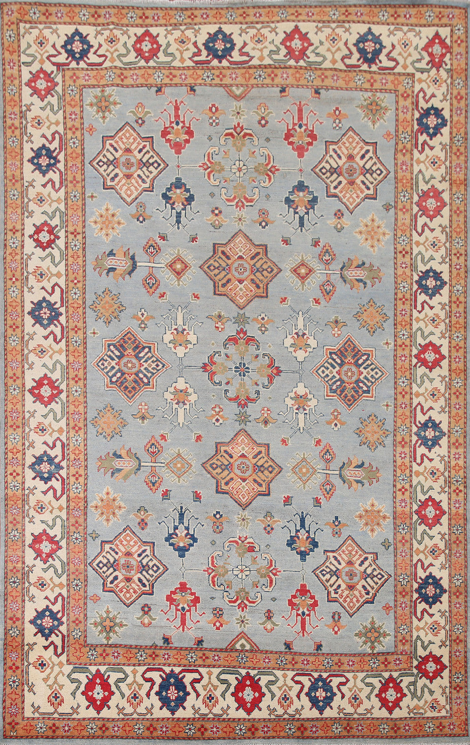 Blue Geometric Kazak Oriental Area Rug 7x10