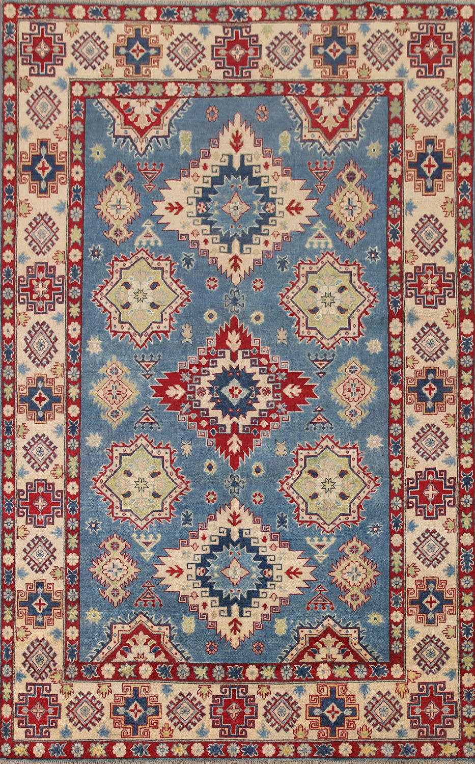 Blue Geometric Kazak Handmade Area Rug 7x10