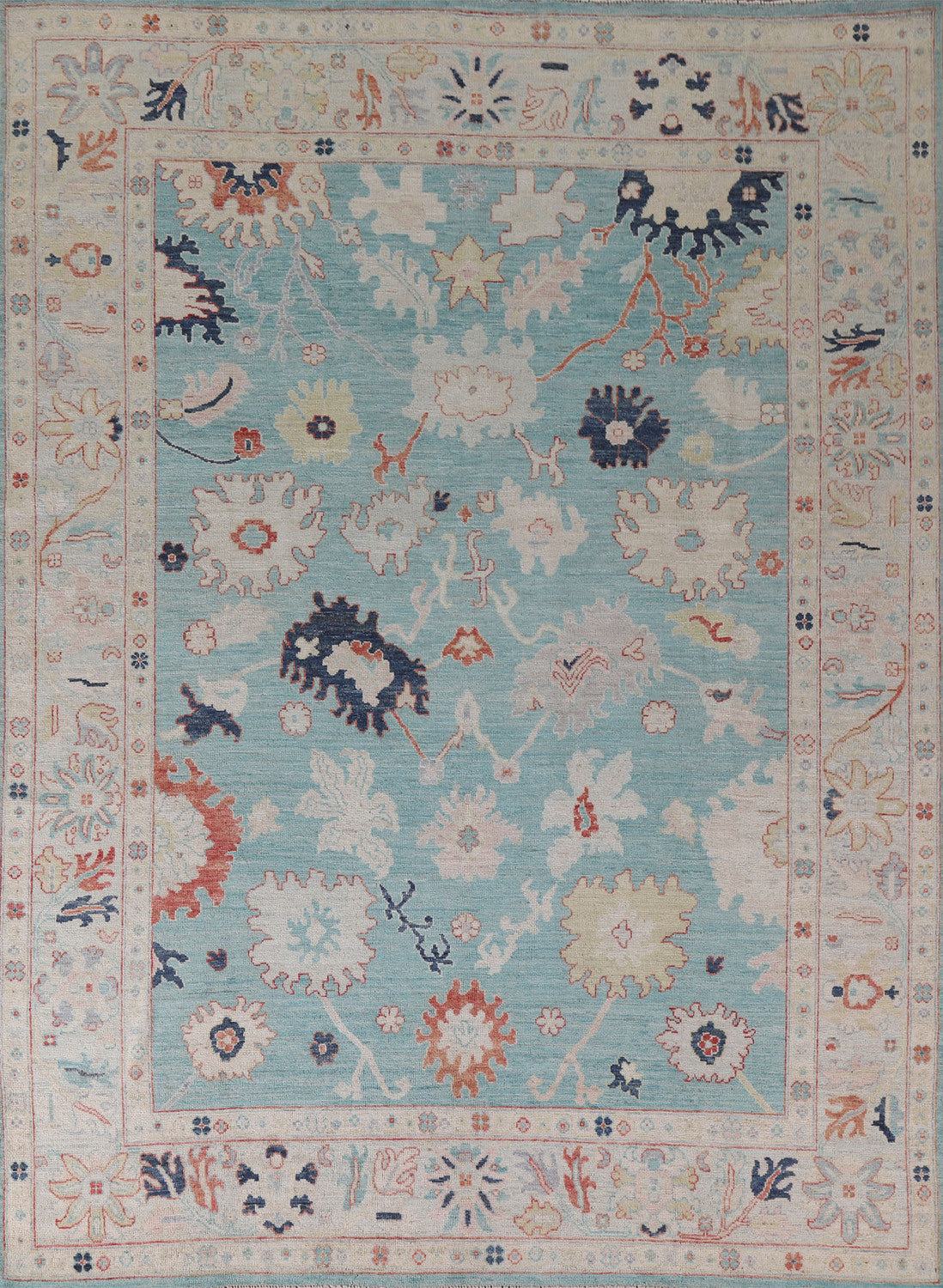 Light Blue Oushak Vegetable Dye Wool Area Rug 9x12