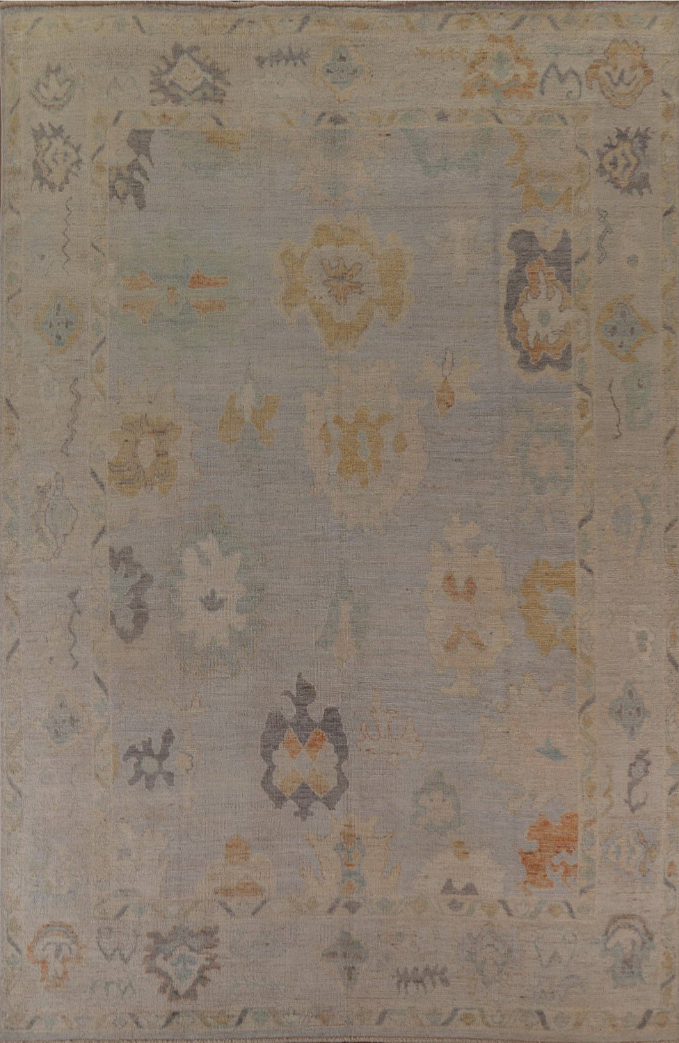 Light Blue Oushak Vegetable Dye Area Rug 6x9