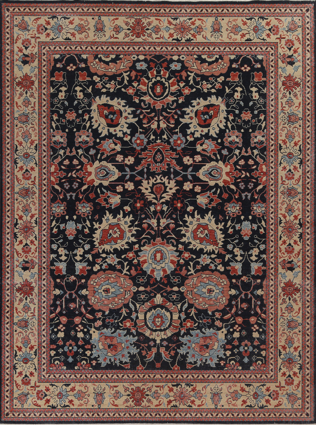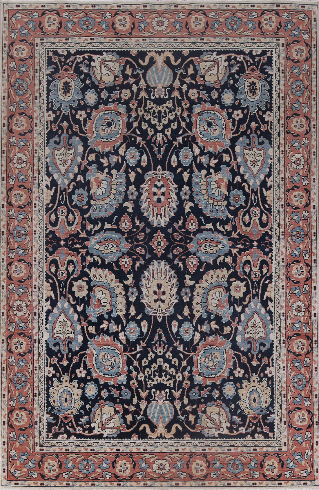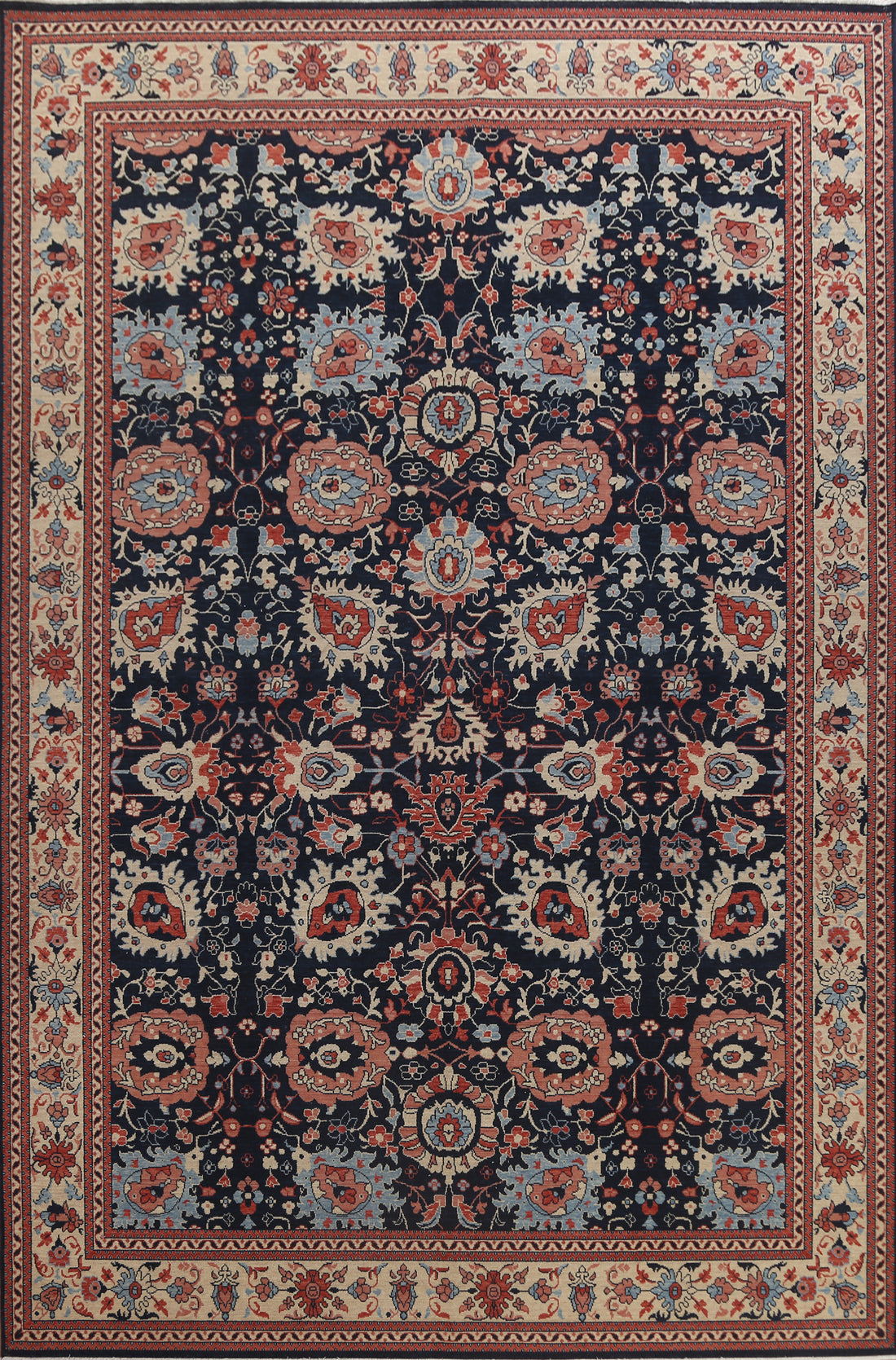 Navy Blue Floral Wool Sultanabad Ziegler Turkish Rug 9x12
