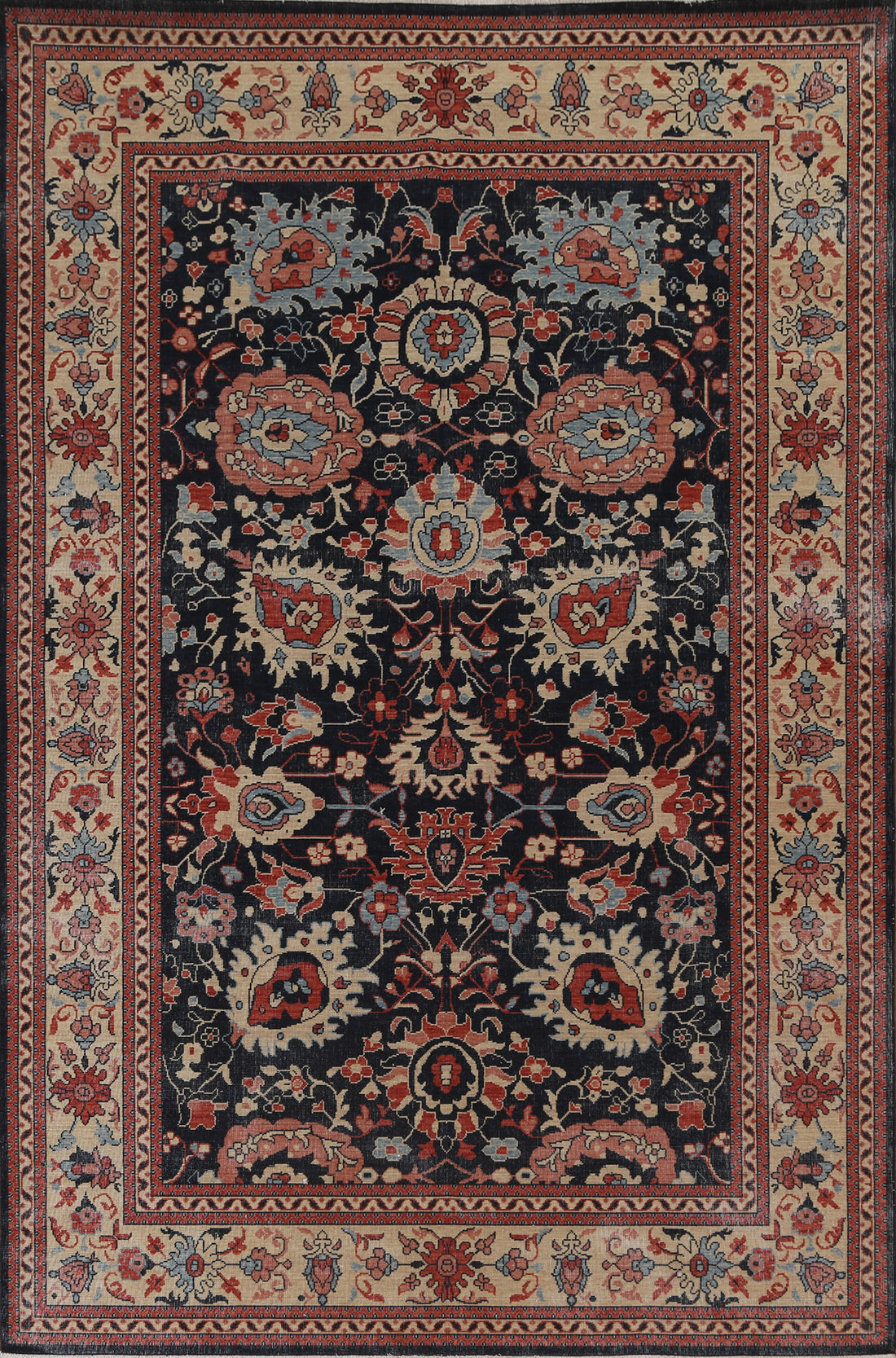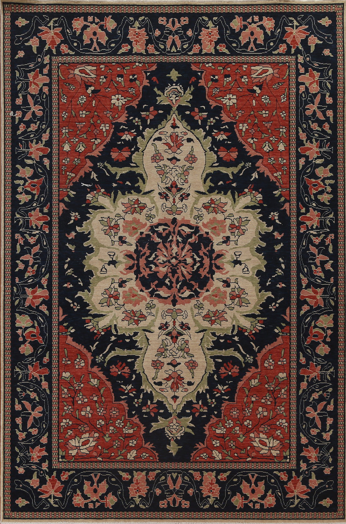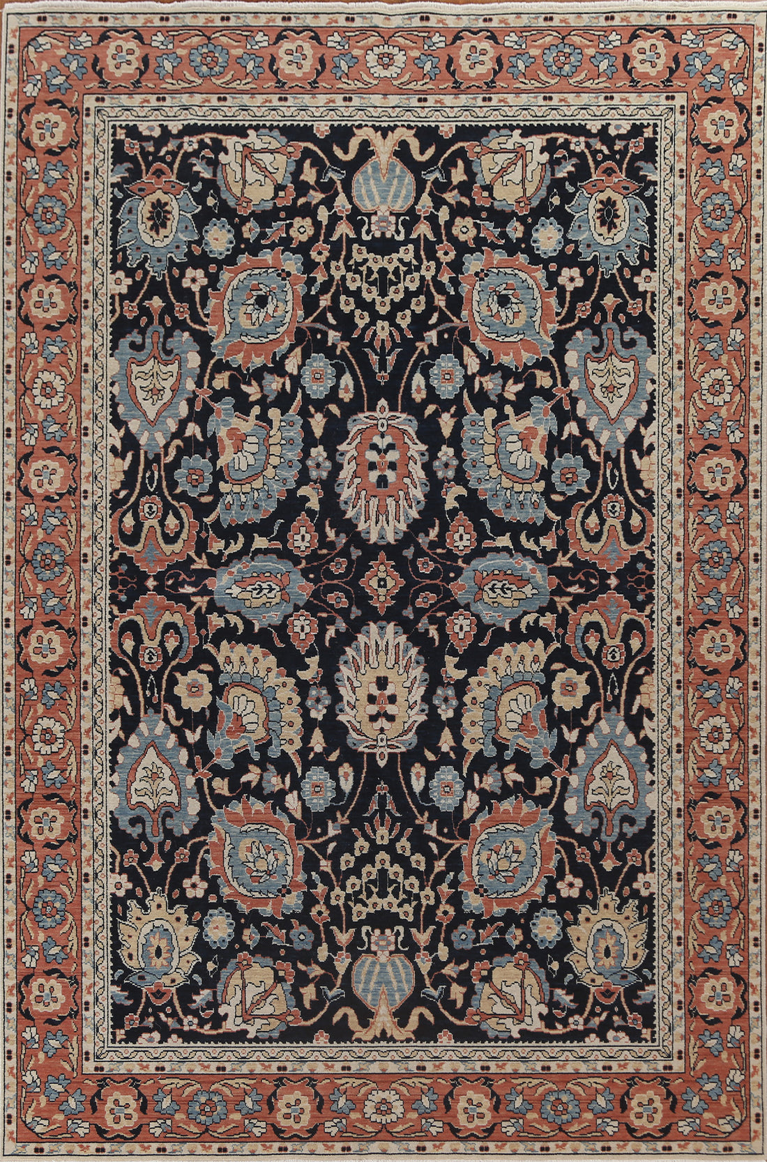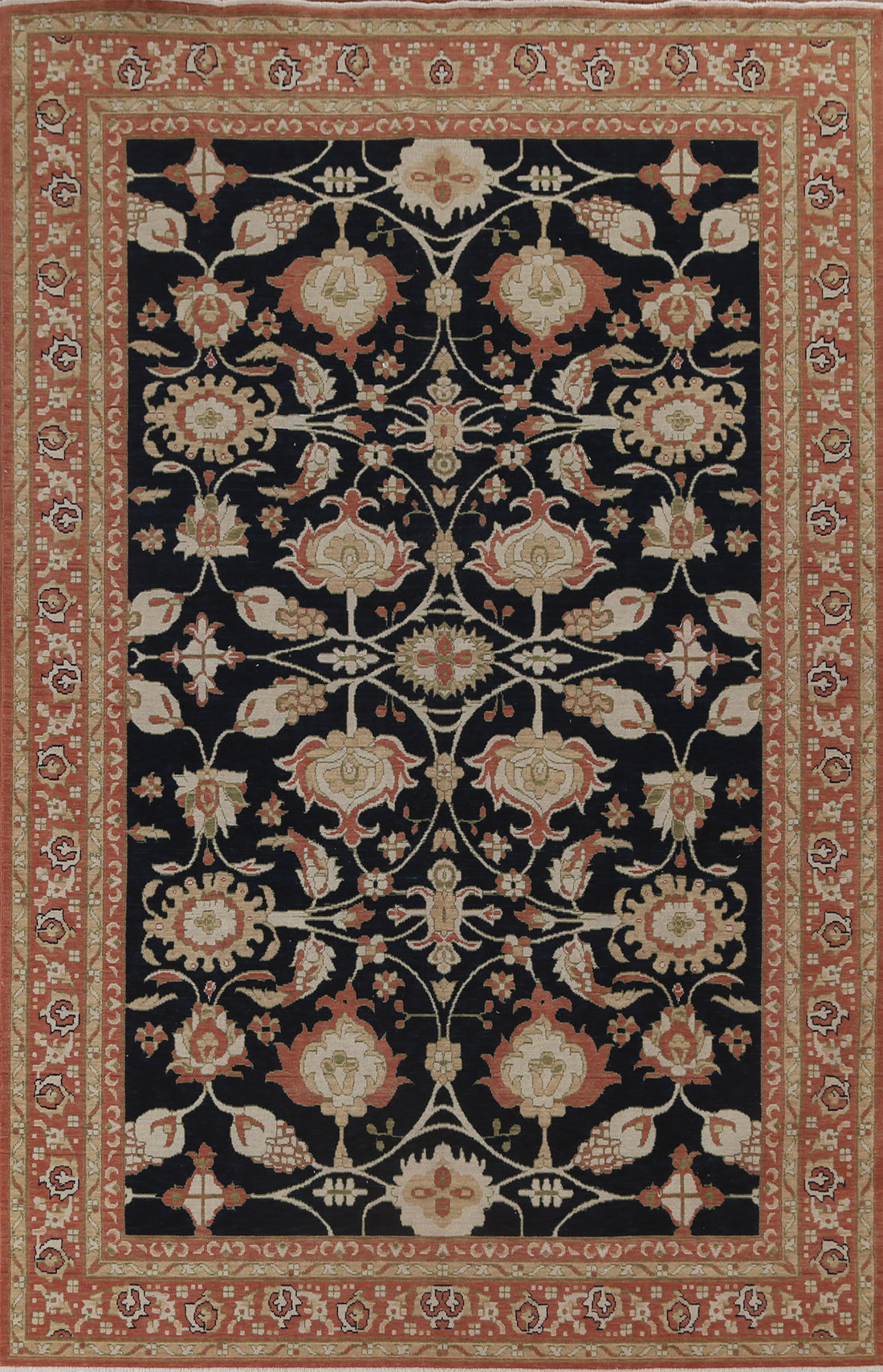 Navy Blue Floral Wool Sultanabad Ziegler Turkish Rug 9x12
