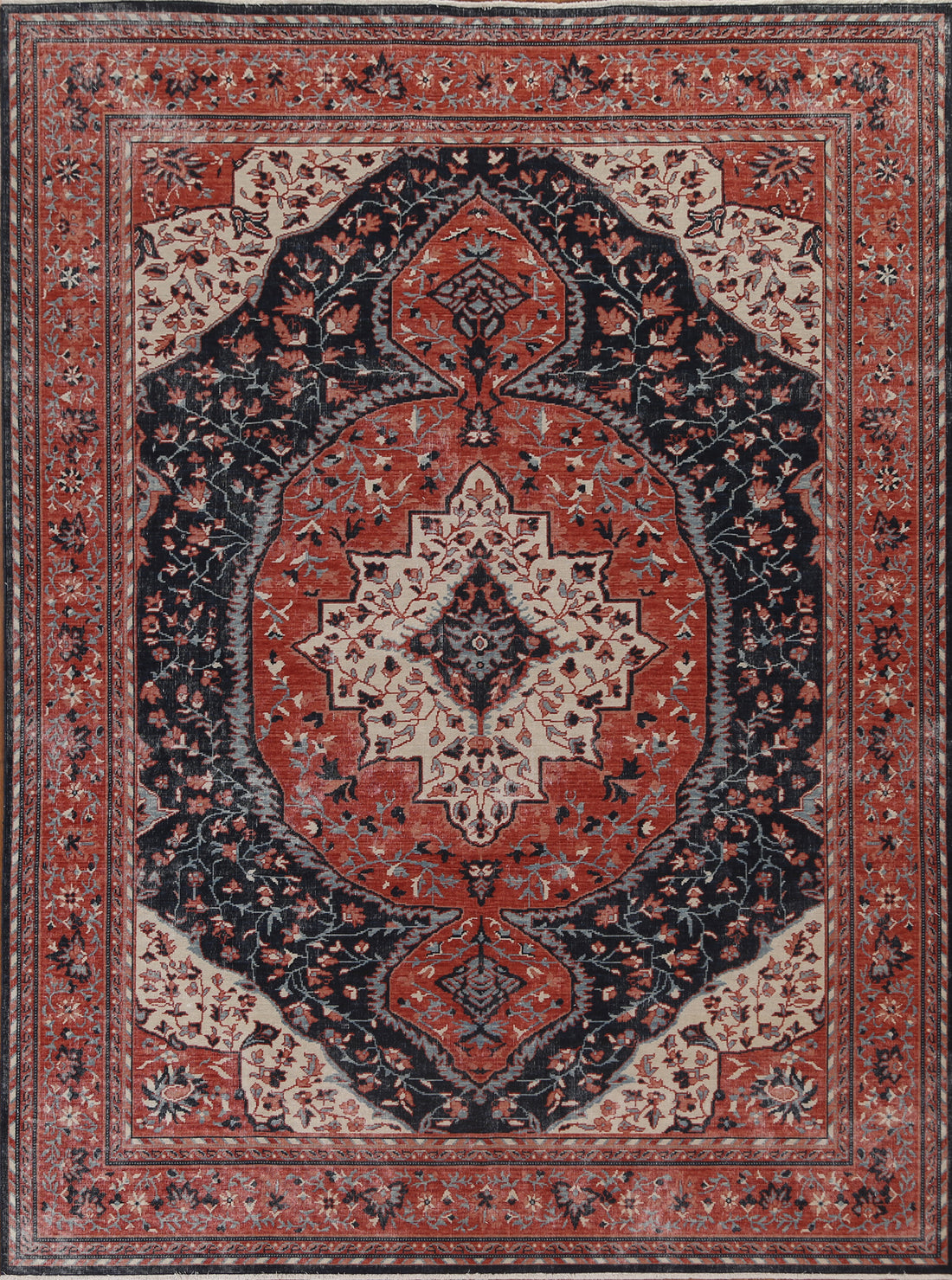 Geometric Distressed Blue Turkish Area Rug 8x10