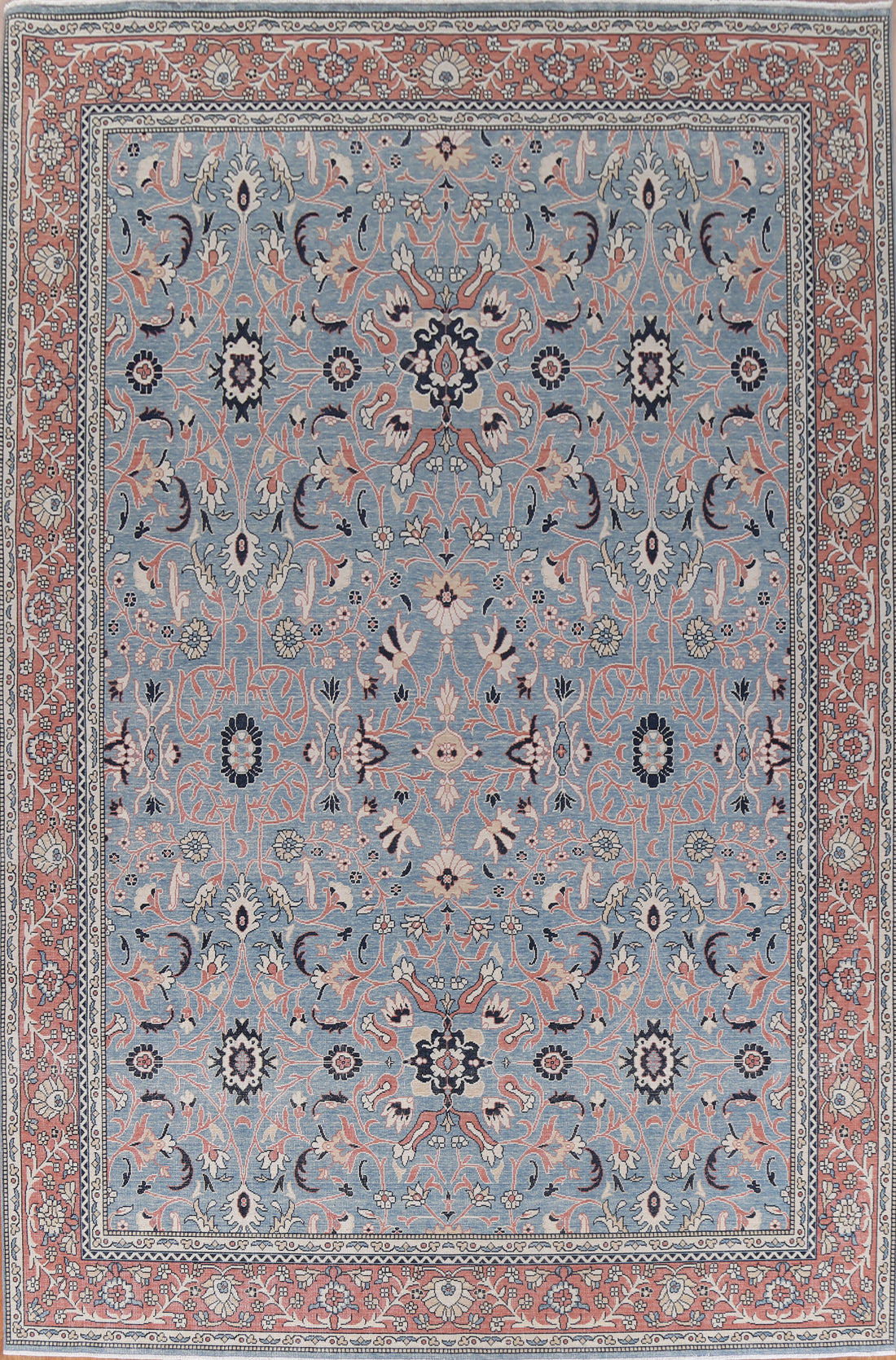 Light Blue Floral Kashan Mohtasham Oriental Wool Rug 10x13
