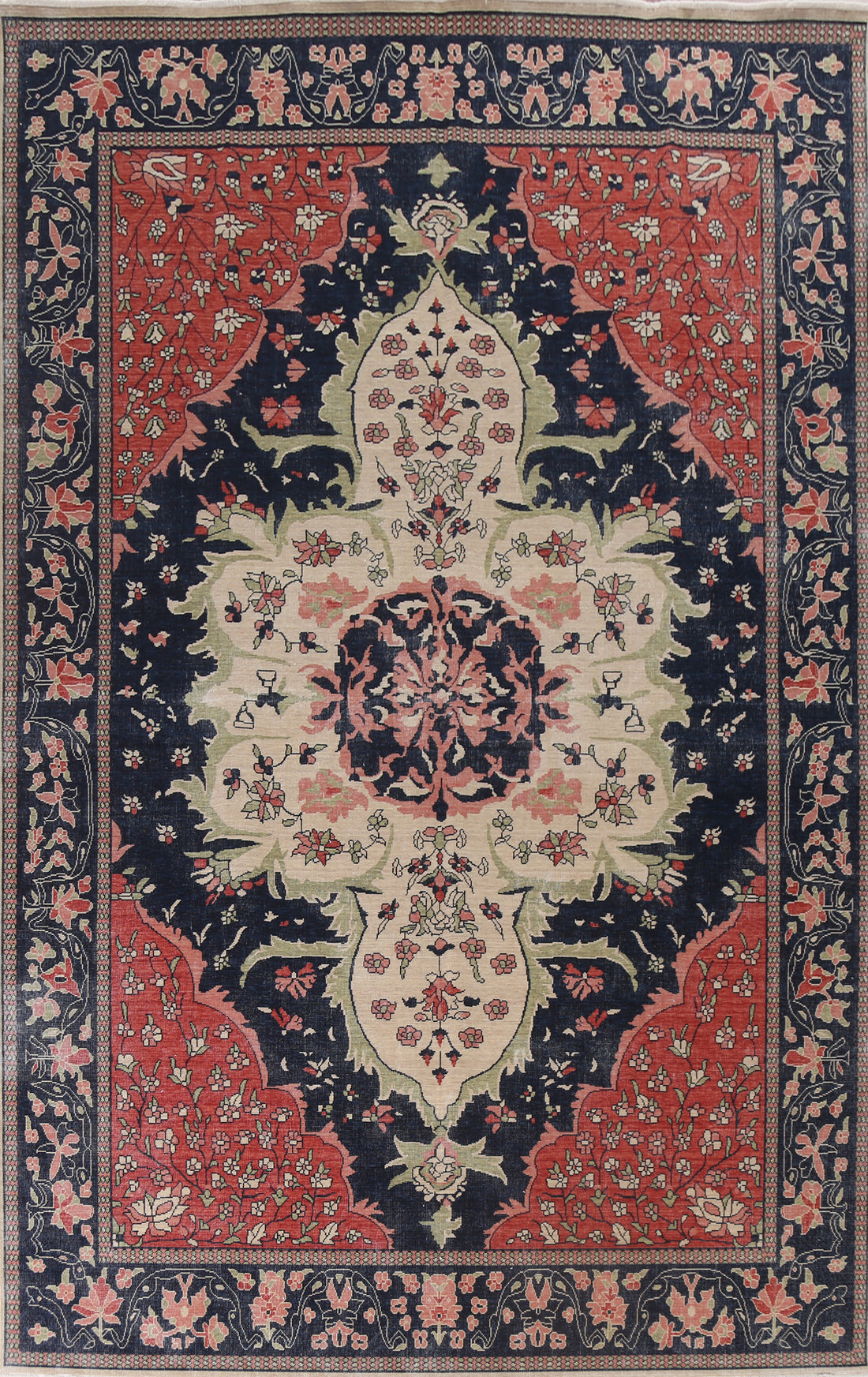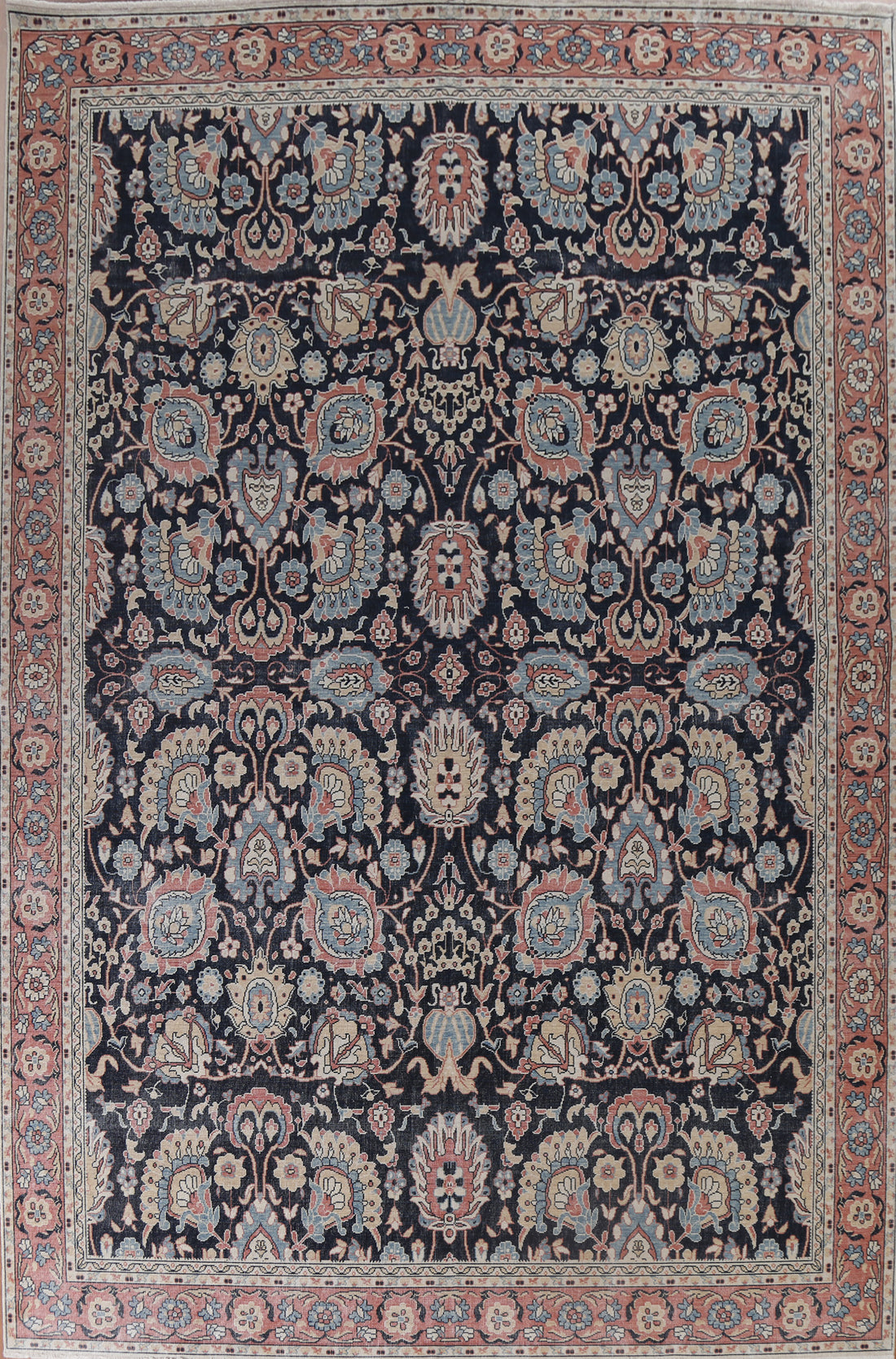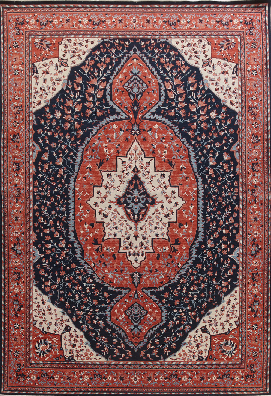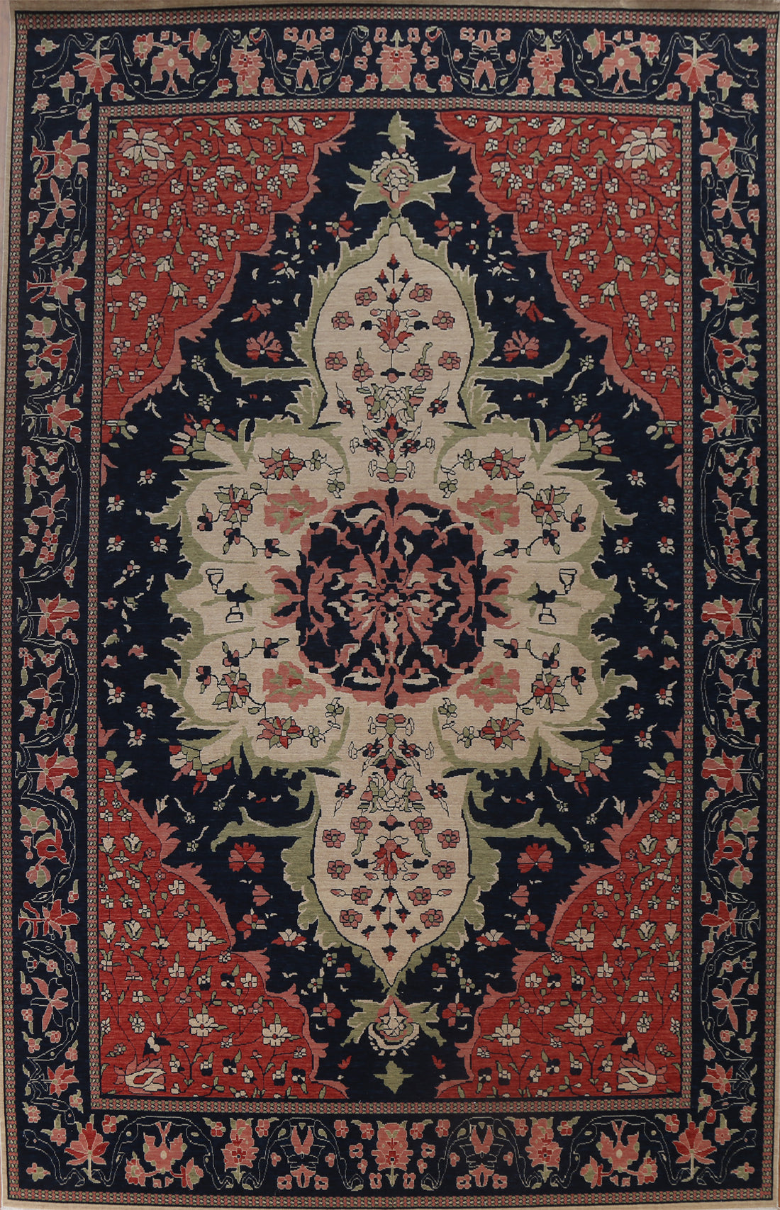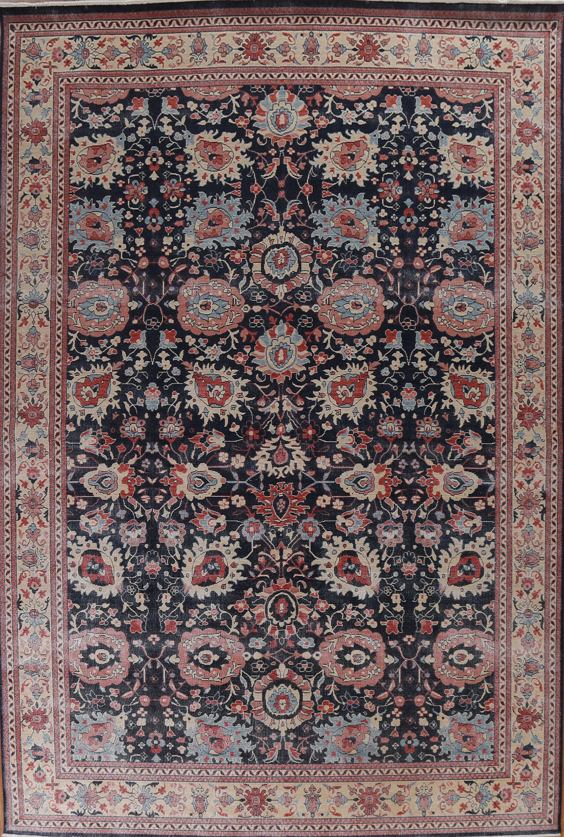 Navy Blue Floral Sarouk Farahan Turkish Area Rug 9x12