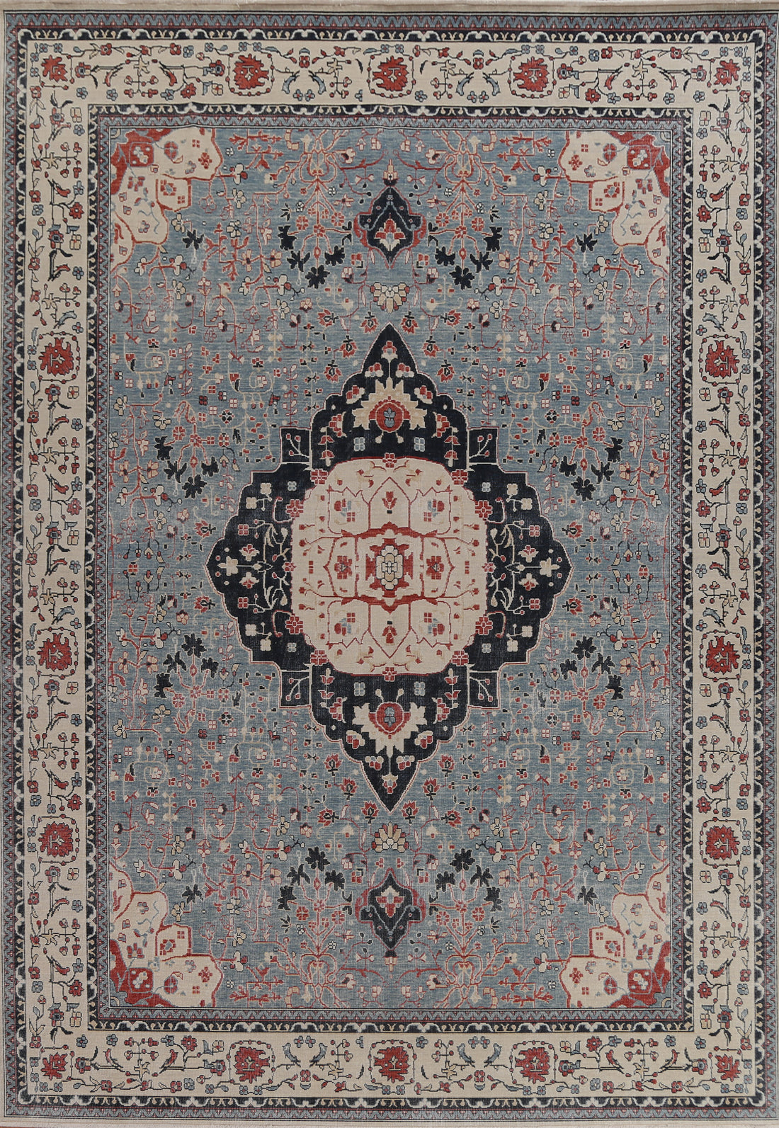 Navy Blue Floral Ziegler Turkish Area Rug 7x10