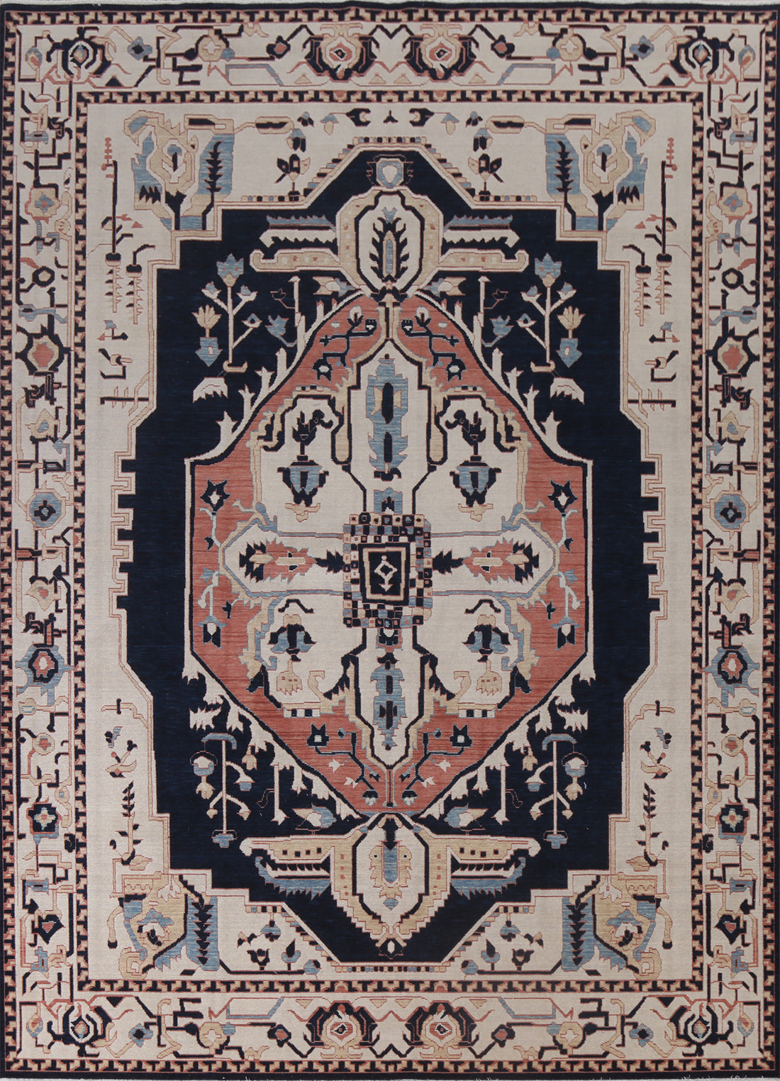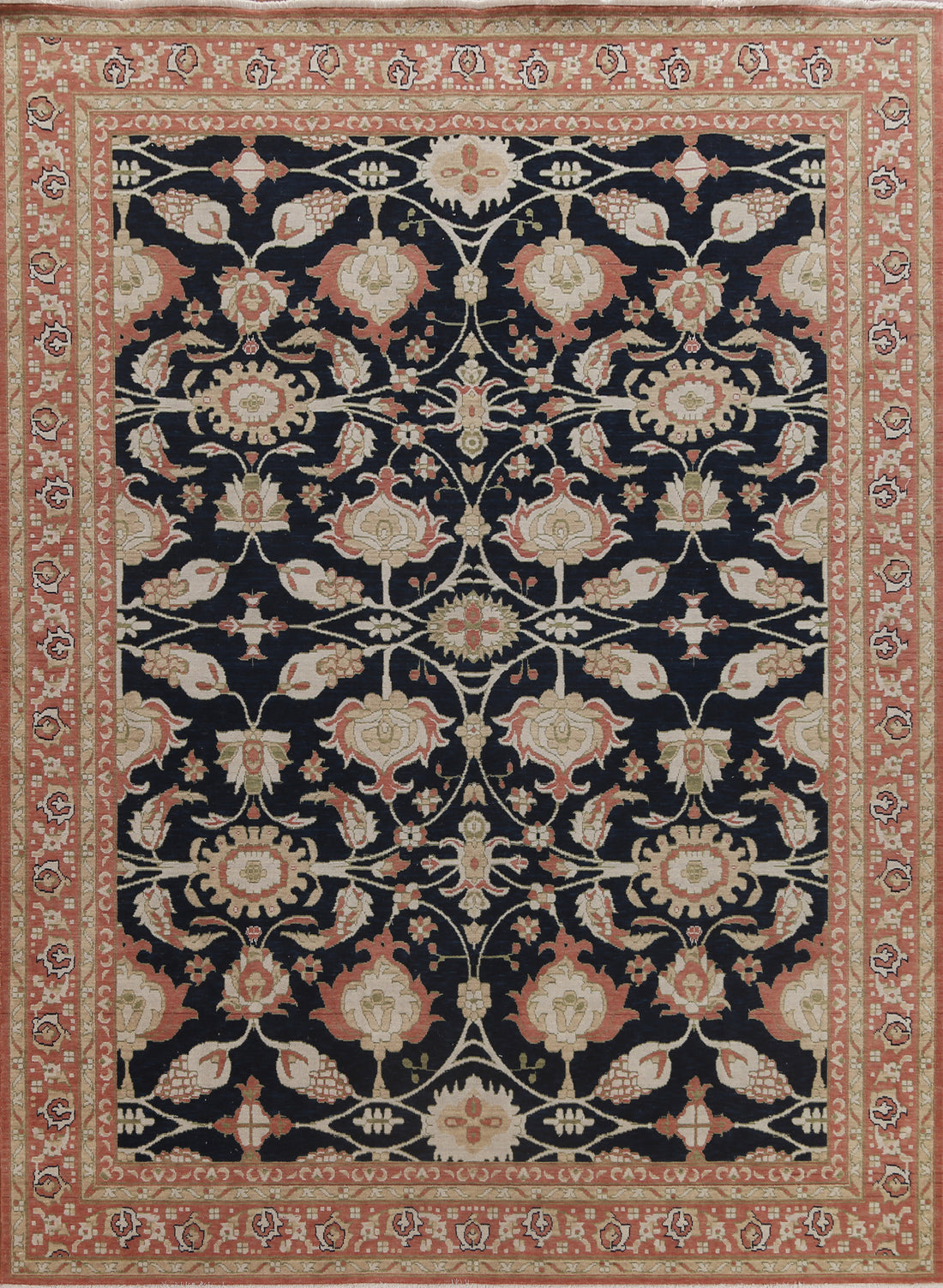 Navy Blue Sultanabad Ziegler Turkish Wool Rug 9x12