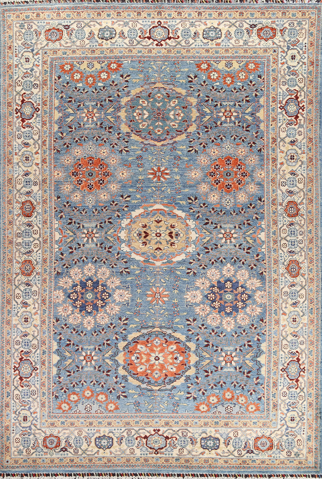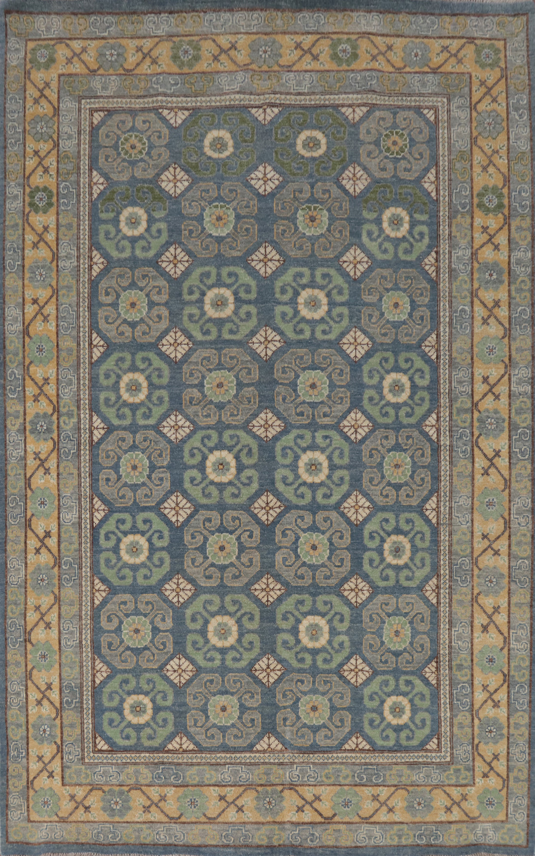 Vegetable Dye Blue Khotan Wool Area Rug 6x9