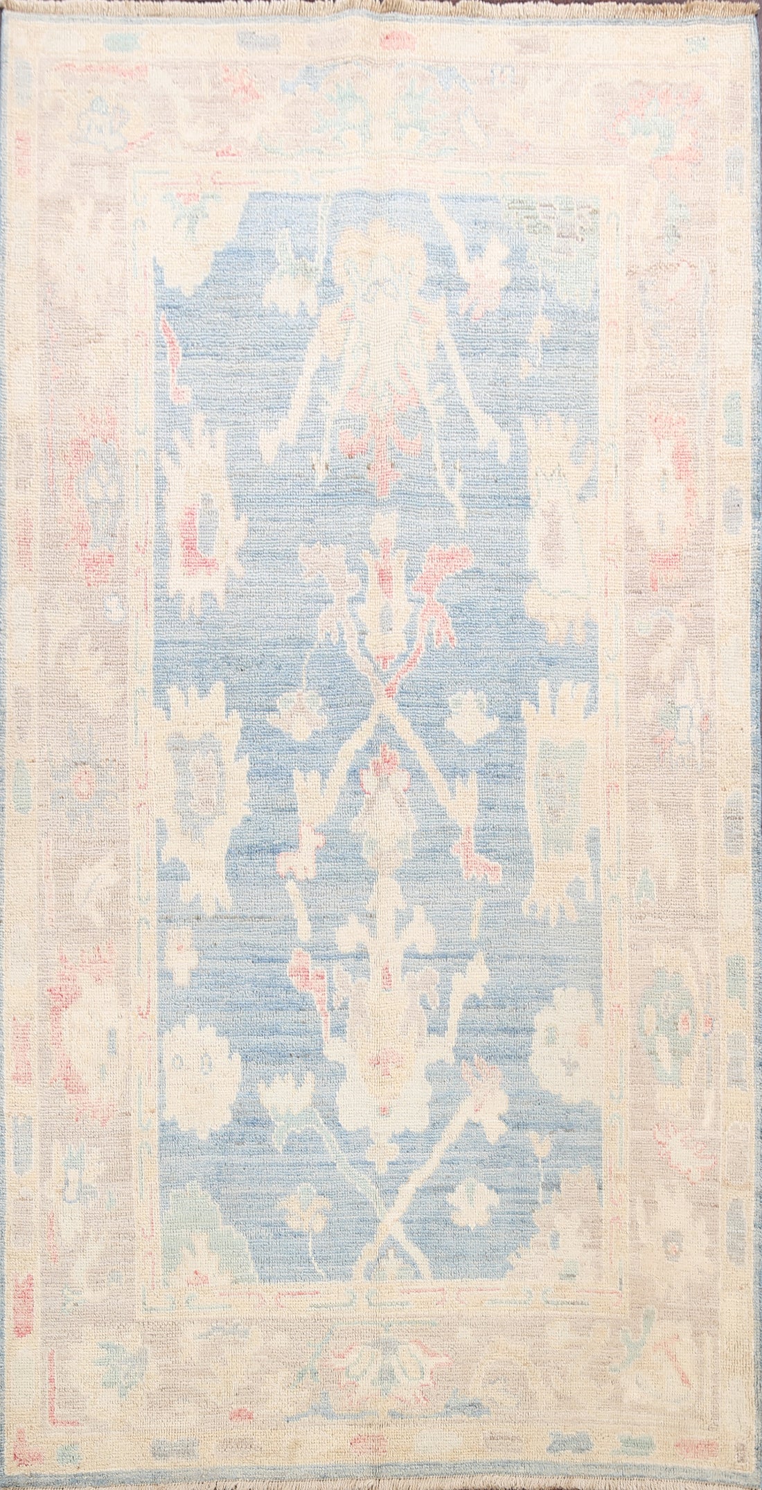 Vegetable Dye Muted Blue Oushak Turkish Hand-Knotted Area Rug 10x14