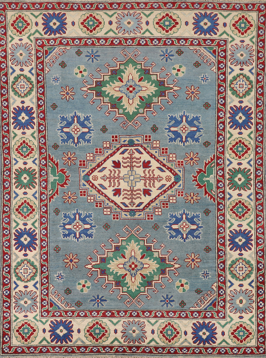 Light Blue Handmade Kazak Oriental Rug 5x7