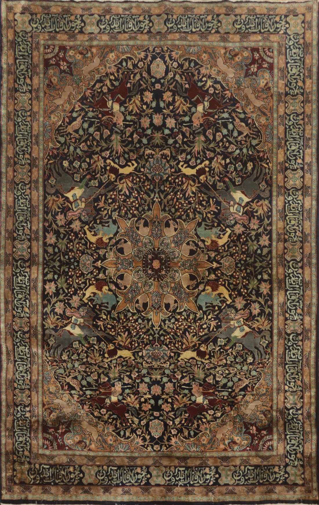 Hunting Design Hereke Vegetable Dye Rug 5x7